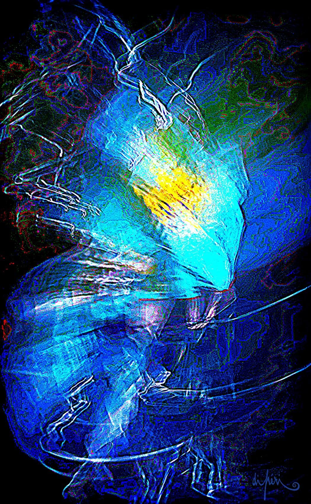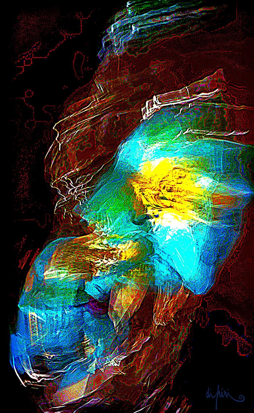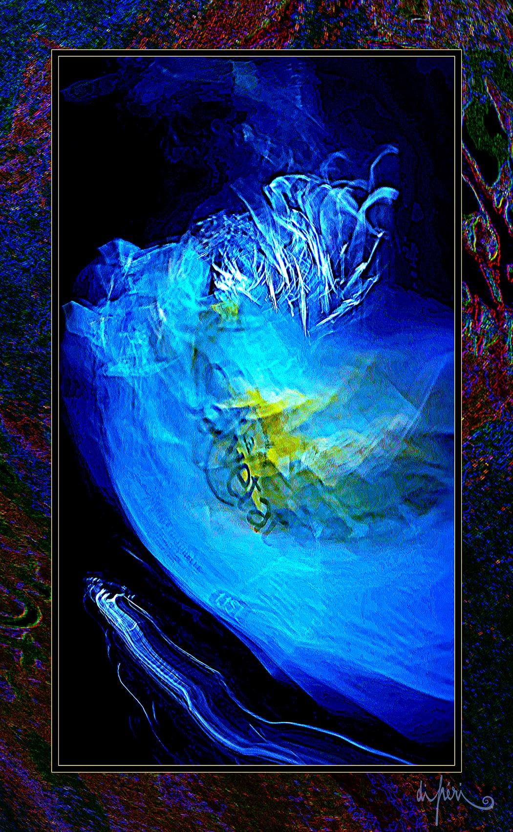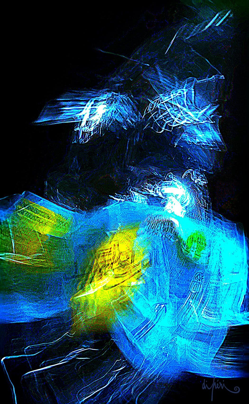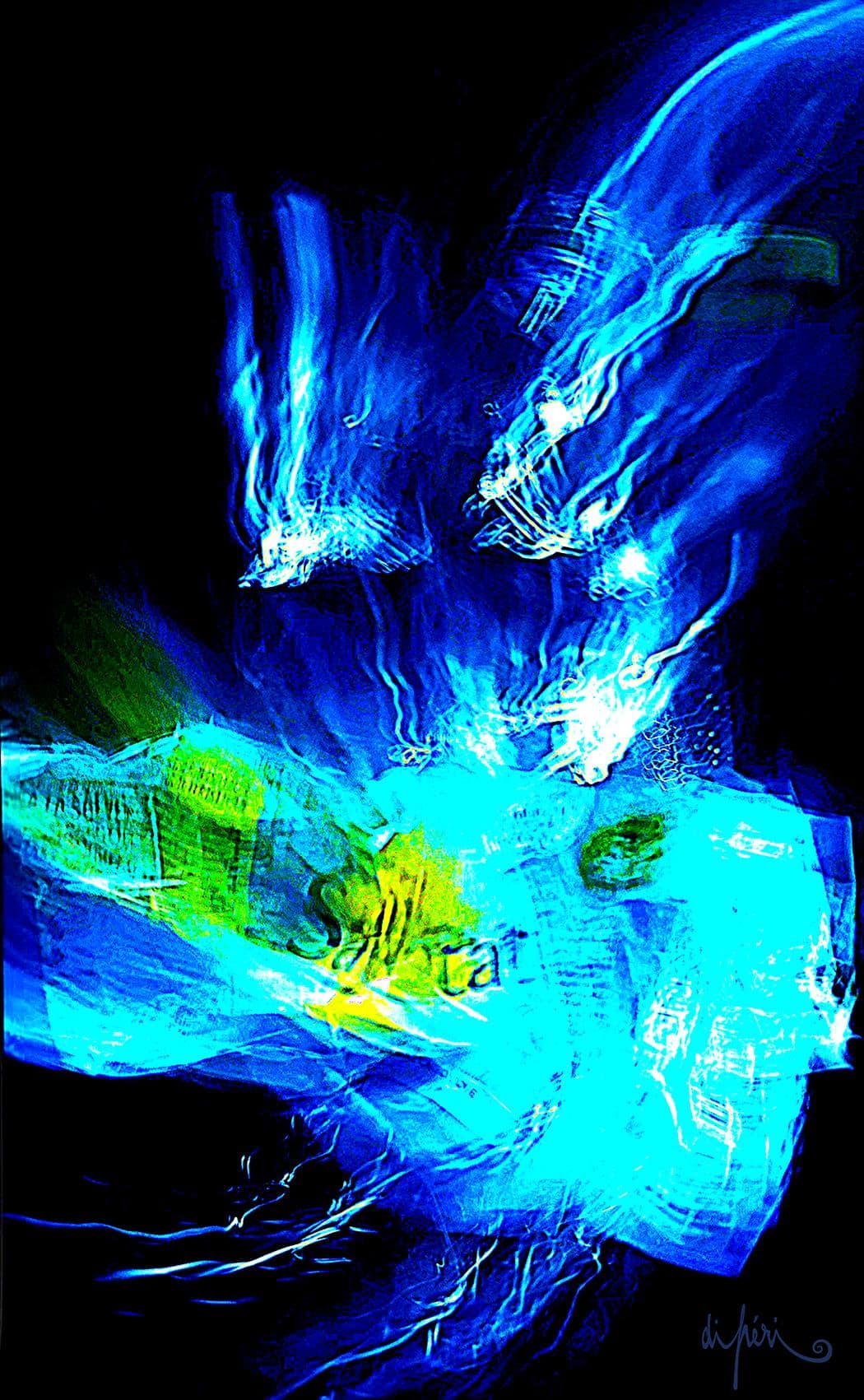 NOTA : tout comme les cadres, les reflets dus au plexiglas, qui n’est pas seulement une matière de protection, font partie intégrante de l’œuvre. Ils en prolongent et en surlignent le sens. Ils ont en charge de contextualiser l’effervescence présentielle de l’image. Le choix délibéré de cette matière de protection à effet miroir, suggère à elle seule, une mise en spatialité plus factuelle que virtuelle.