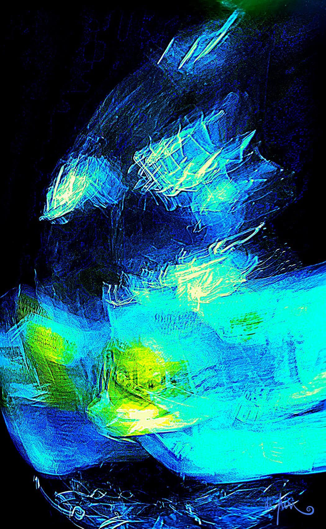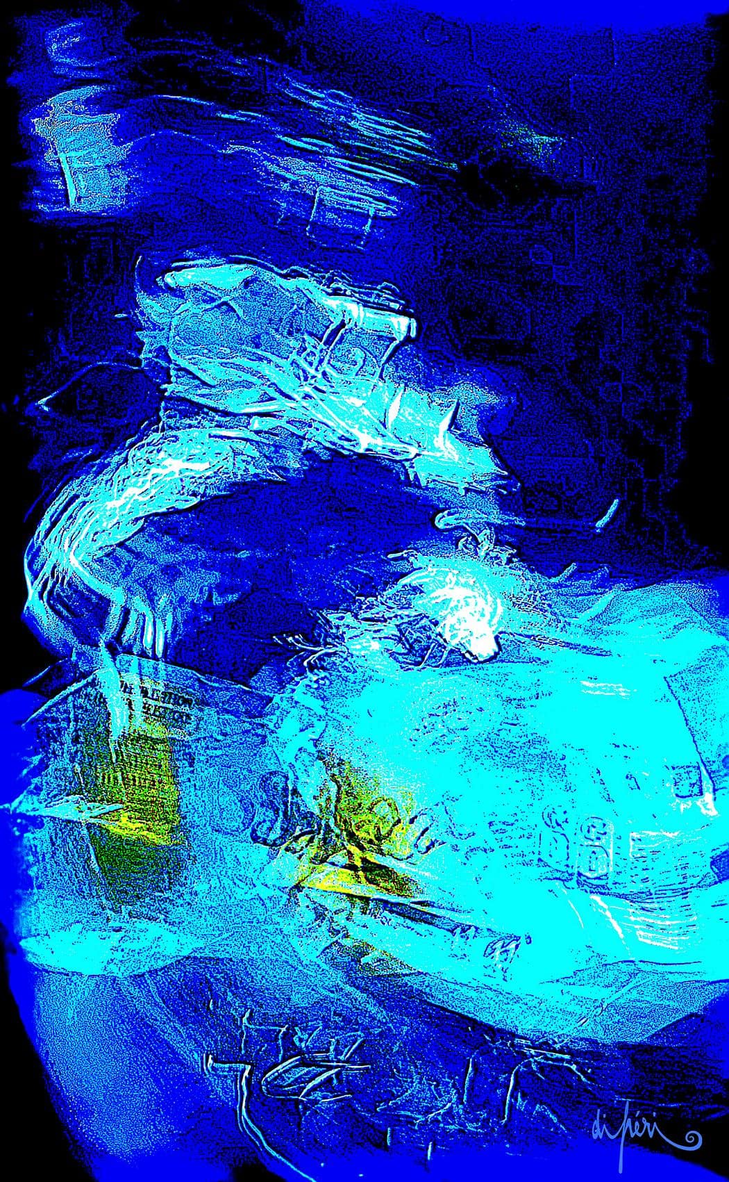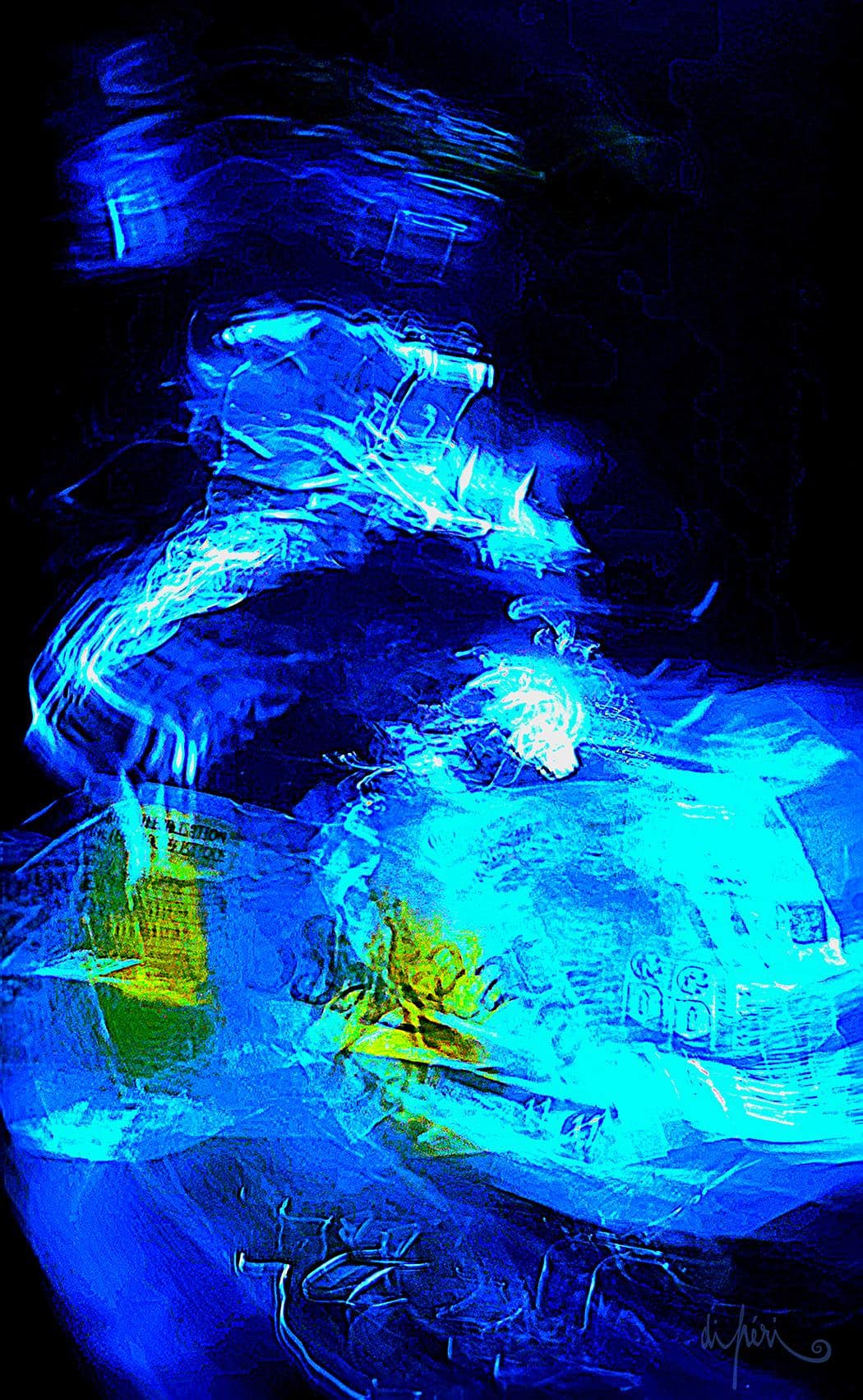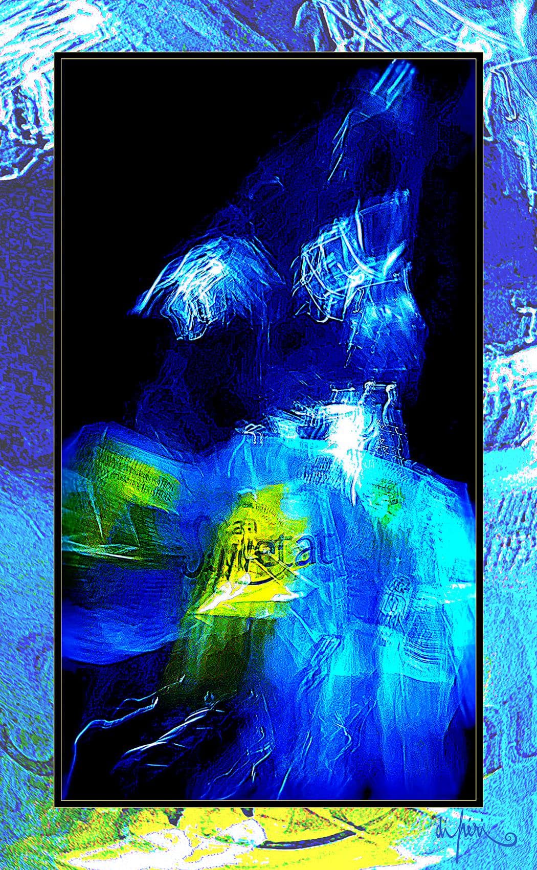 NOTA : tout comme les cadres, les reflets dus au plexiglas, qui n’est pas seulement une matière de protection, font partie intégrante de l’œuvre. Ils en prolongent et en surlignent le sens. Ils ont en charge de contextualiser l’effervescence présentielle de l’image. Le choix délibéré de cette matière de protection à effet miroir, suggère à elle seule, une mise en spatialité plus factuelle que virtuelle.