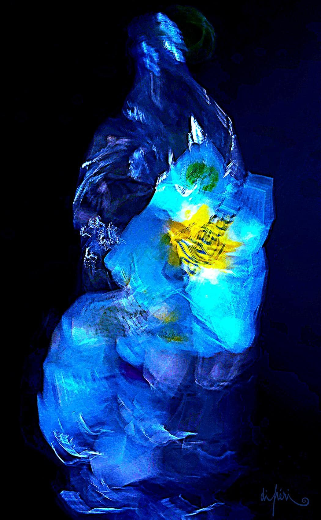En effet, des compositions « appellent » à un trait d’union diffus avec l’environnement et avec le futur. Tel un écho, ce cadre apporte profondeur symbolique et intensité sémiologique . Son « aura diffractive » sertit l’image focale de sa résonance centrifuge afin d’évoquer une forme d’acte lyrique déjà transitionnel.