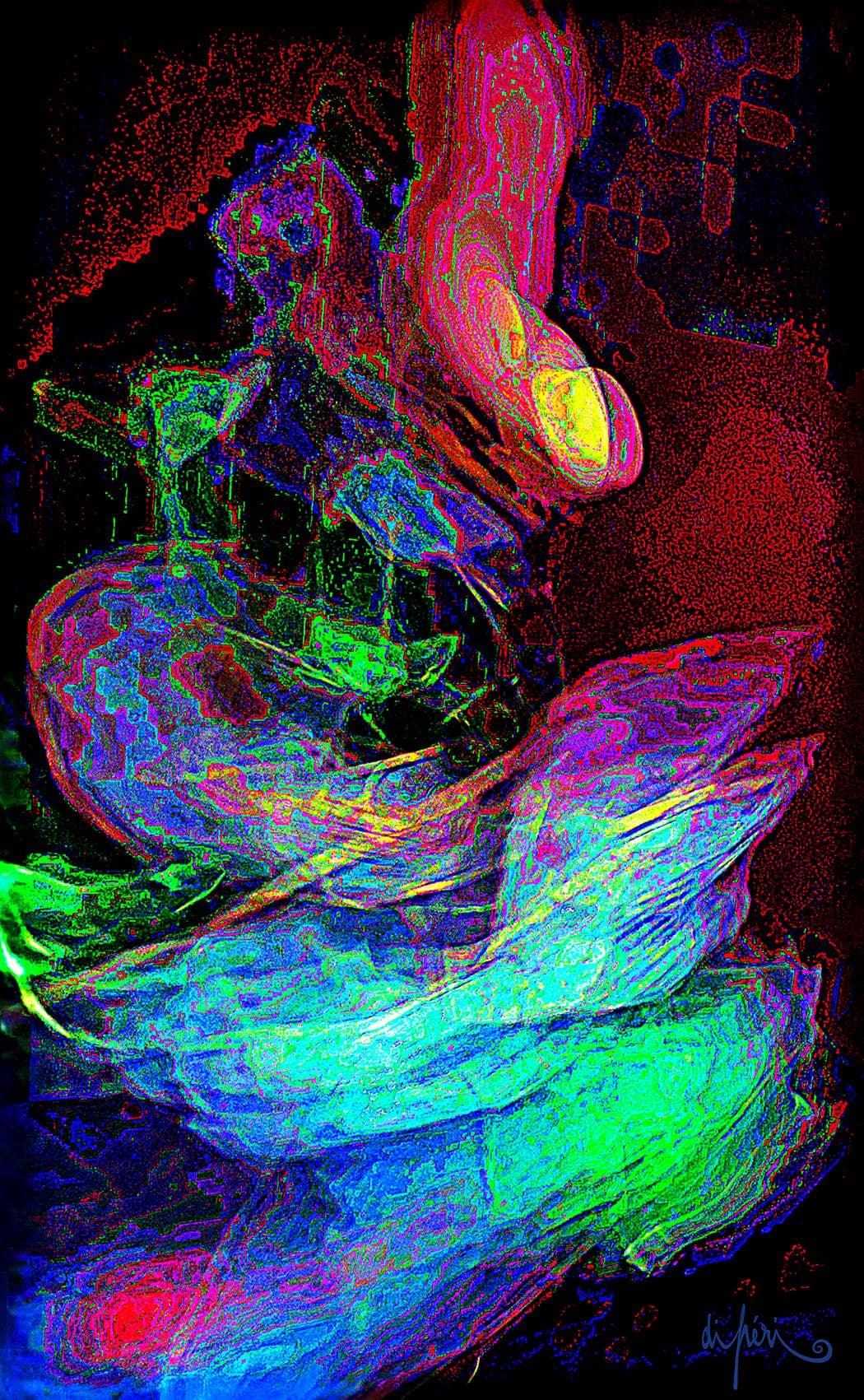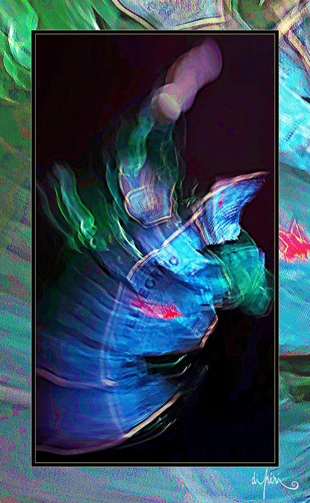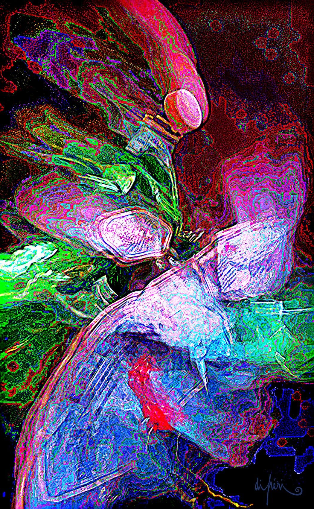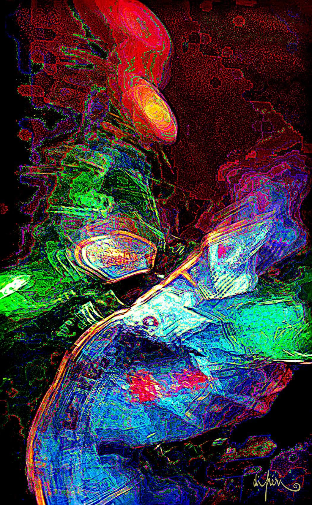 NOTA : tout comme les cadres, les reflets dus au plexiglas, qui n’est pas seulement une matière de protection, font partie intégrante de l’œuvre. Ils en prolongent et en surlignent le sens. Ils ont en charge de contextualiser l’effervescence présentielle de l’image. Le choix délibéré de cette matière de protection à effet miroir, suggère à elle seule, une mise en spatialité plus factuelle que virtuelle.