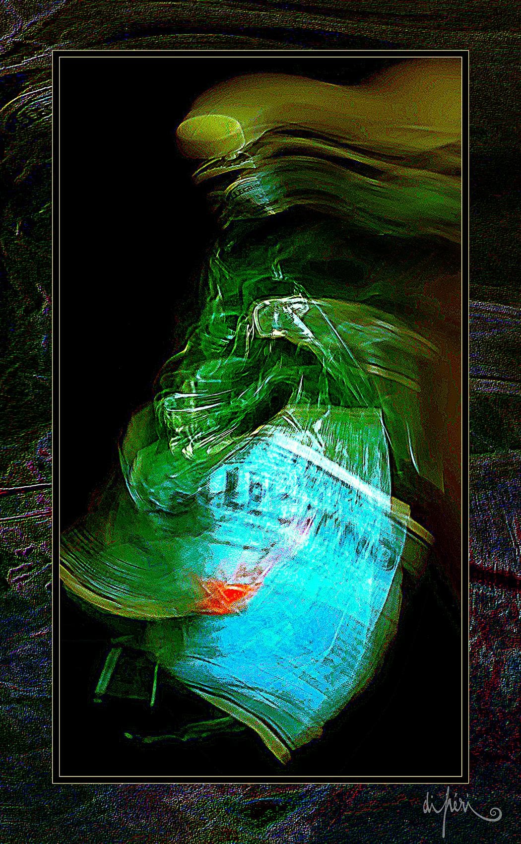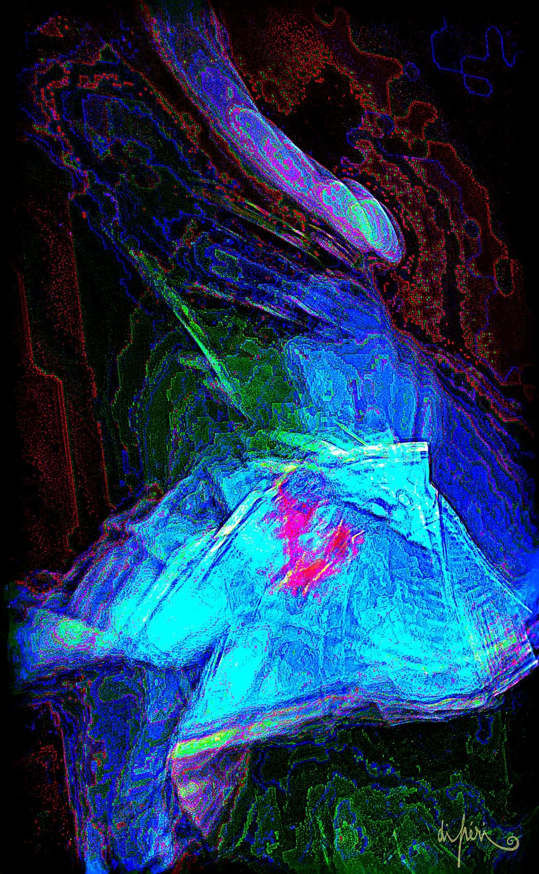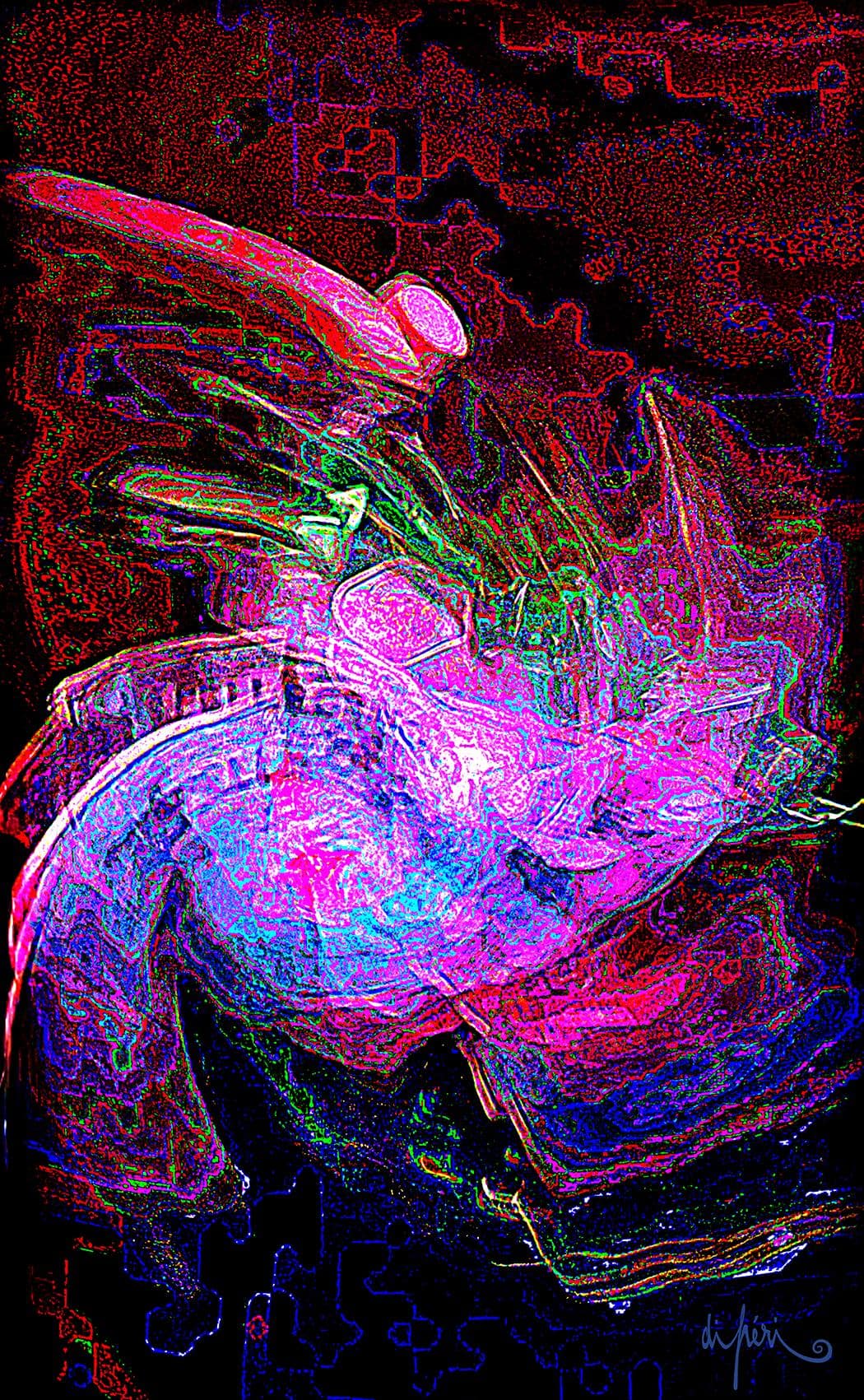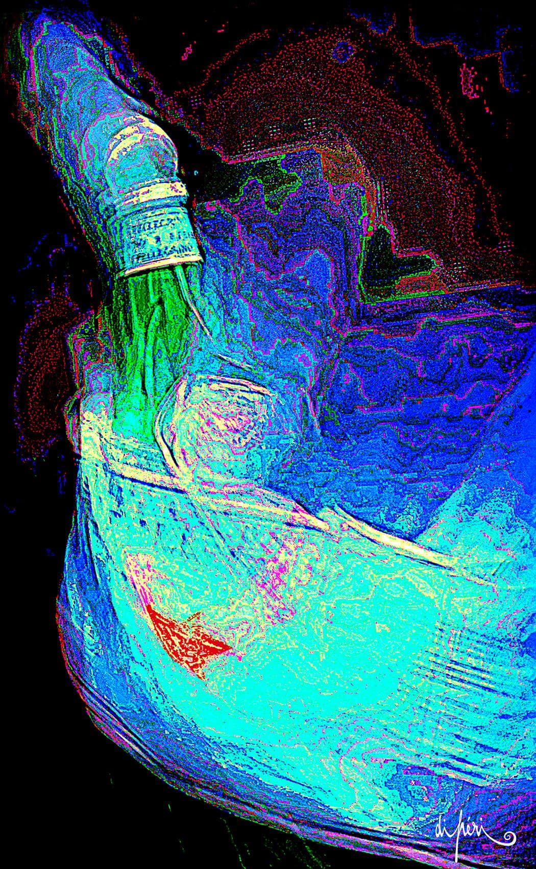 NOTA : tout comme les cadres, les reflets dus au plexiglas, qui n’est pas seulement une matière de protection, font partie intégrante de l’œuvre. Ils en prolongent et en surlignent le sens. Ils ont en charge de contextualiser l’effervescence présentielle de l’image. Le choix délibéré de cette matière de protection à effet miroir, suggère à elle seule, une mise en spatialité plus factuelle que virtuelle.
