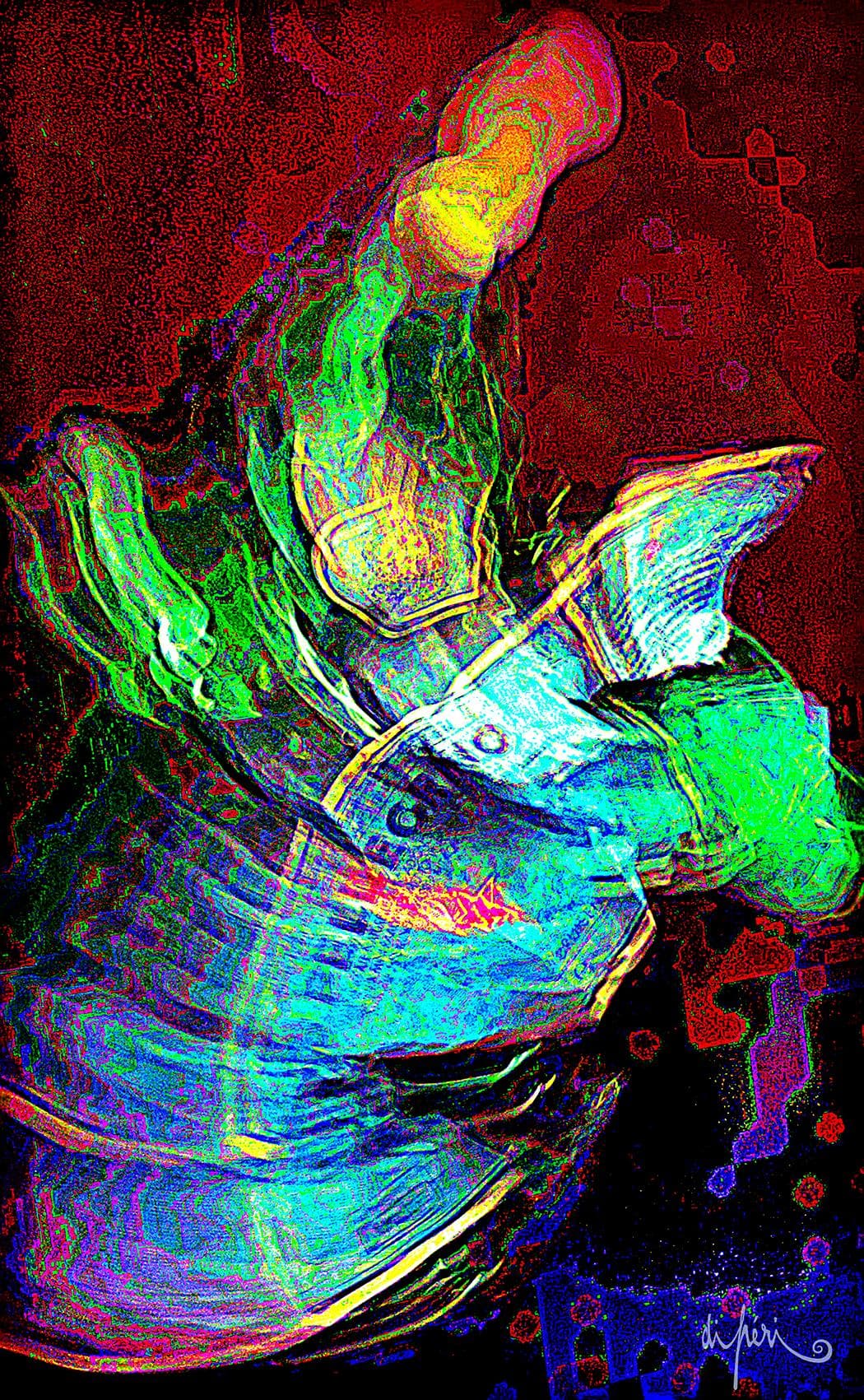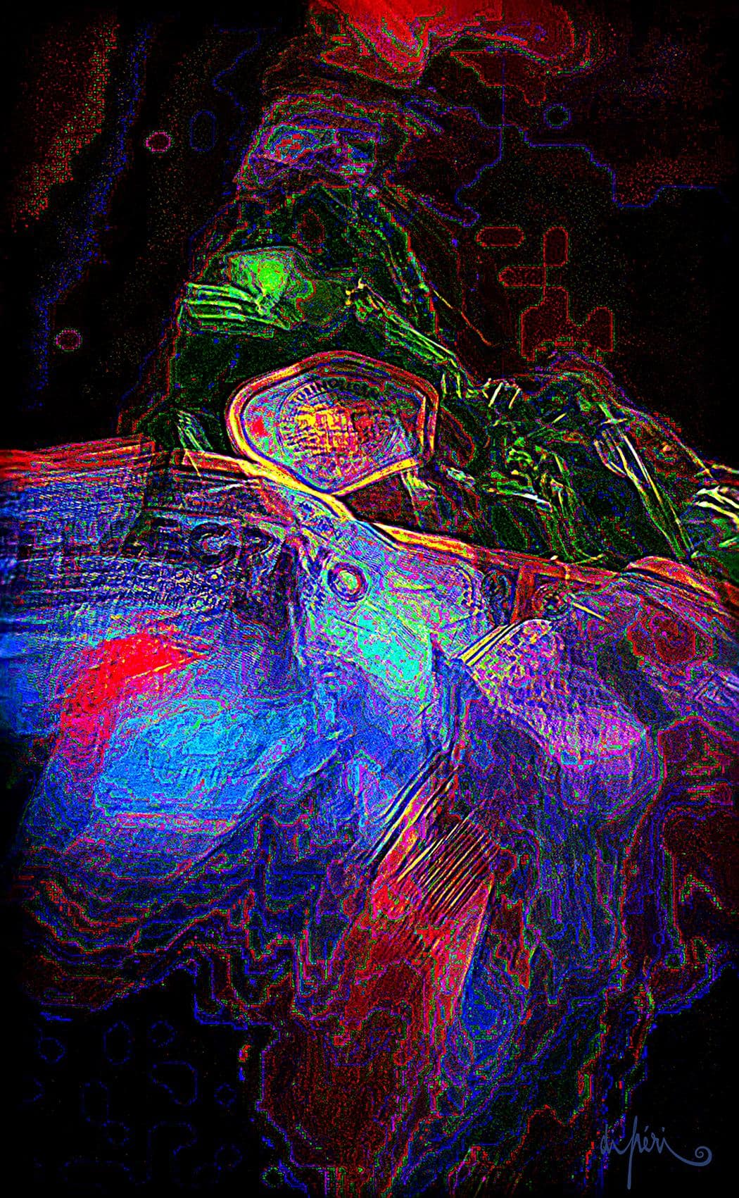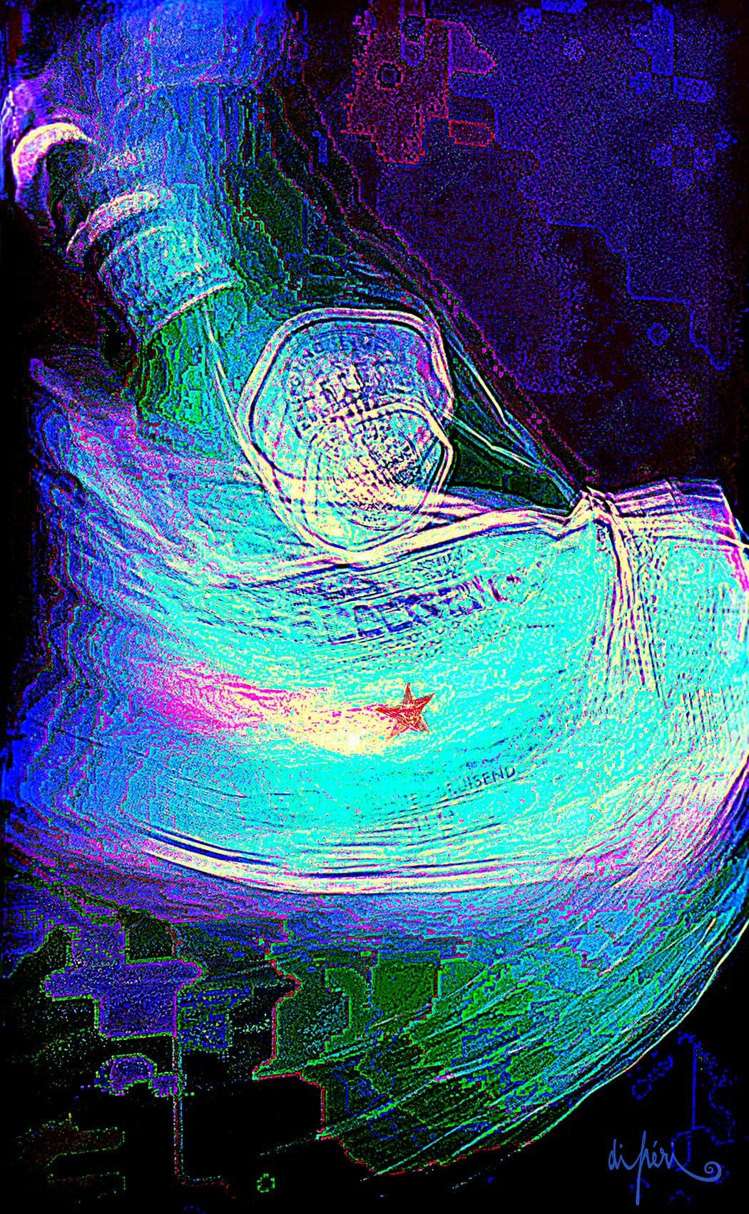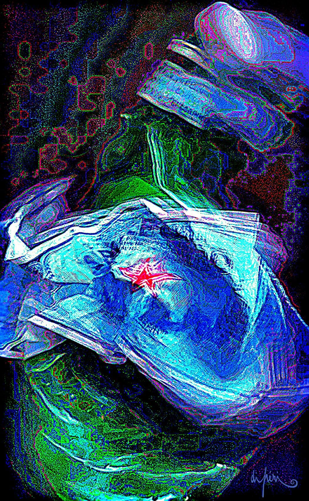 NOTA : tout comme les cadres, les reflets dus au plexiglas, qui n’est pas seulement une matière de protection, font partie intégrante de l’œuvre. Ils en prolongent et en surlignent le sens. Ils ont en charge de contextualiser l’effervescence présentielle de l’image. Le choix délibéré de cette matière de protection à effet miroir, suggère à elle seule, une mise en spatialité plus factuelle que virtuelle.