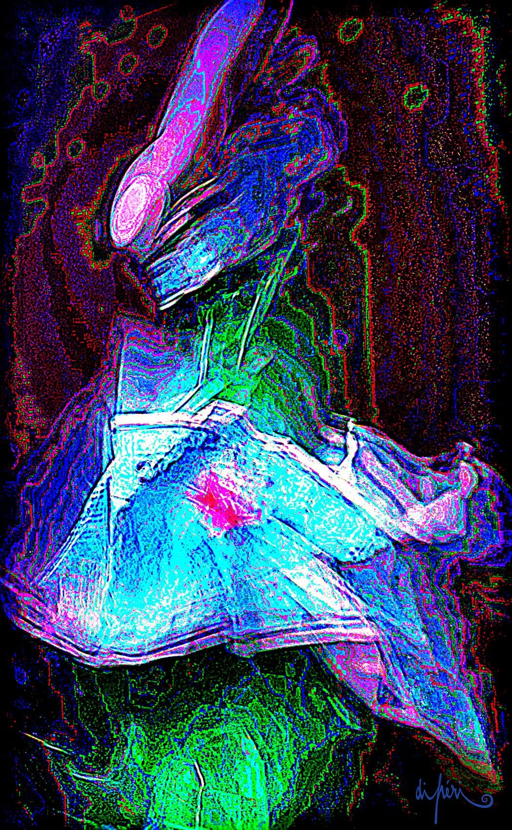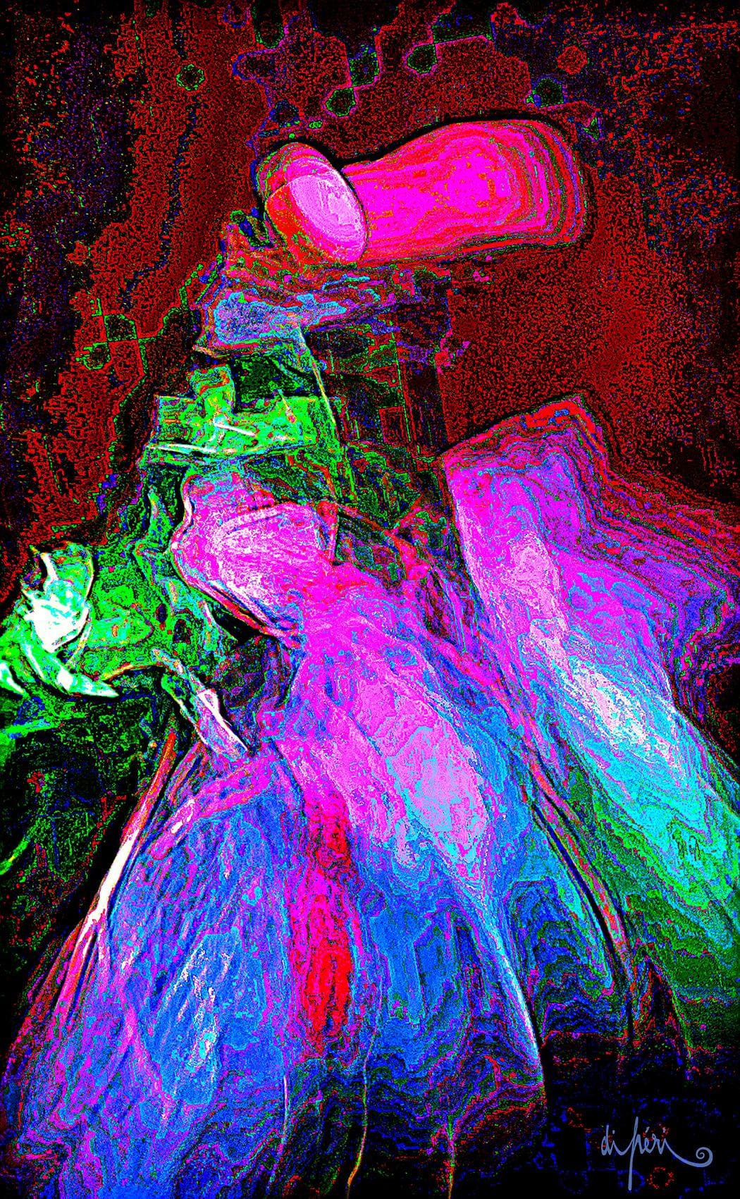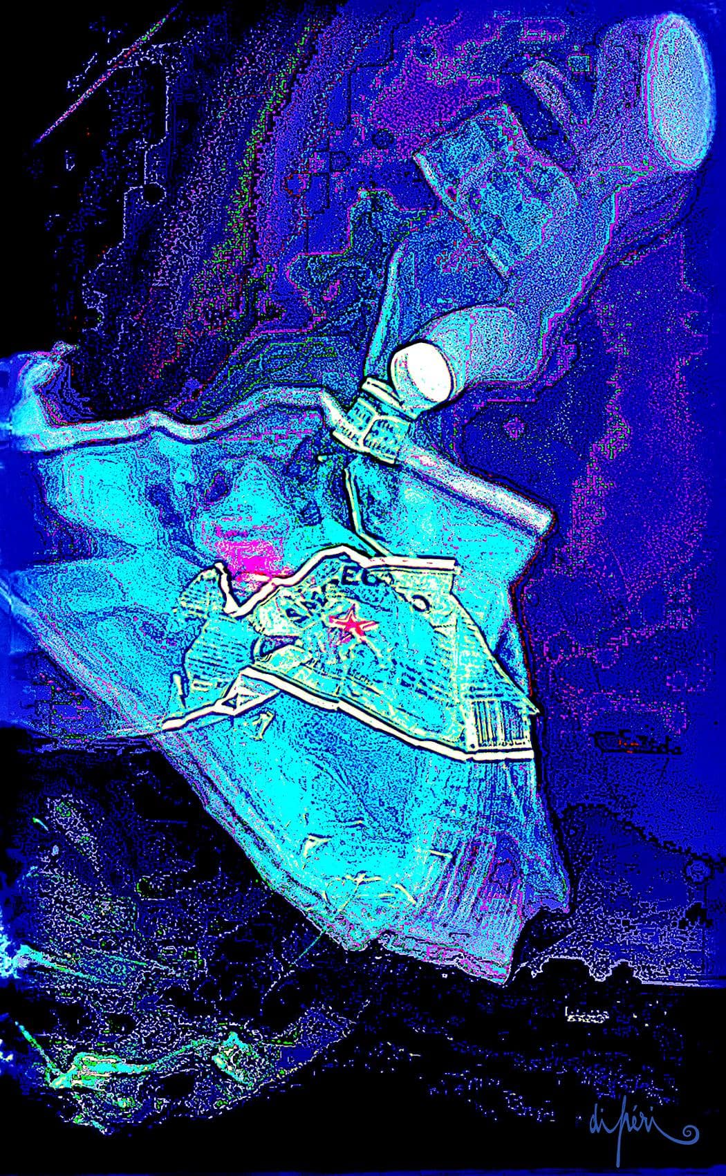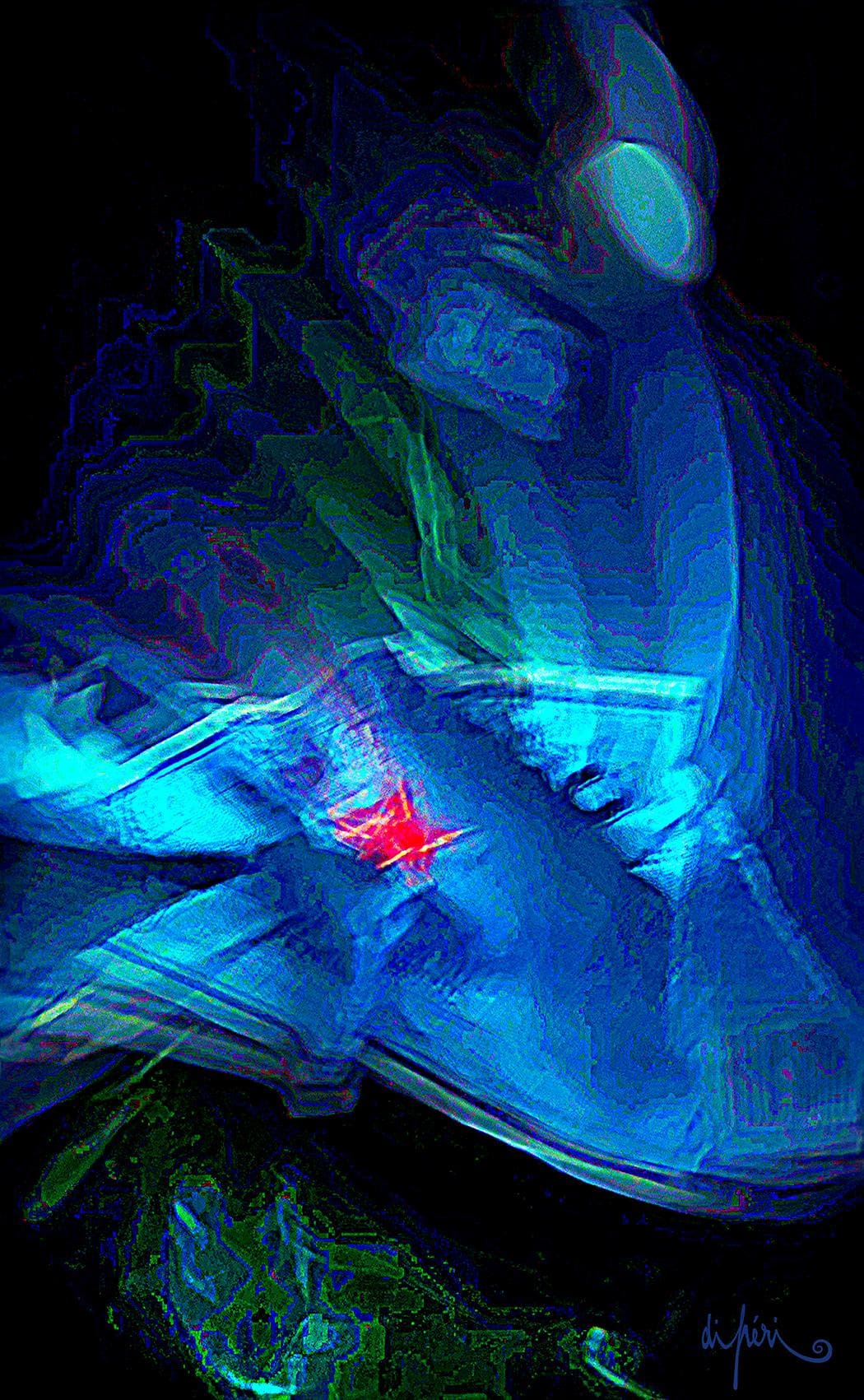 En effet, des compositions « appellent » à un trait d’union diffus avec l’environnement et avec le futur. Tel un écho, ce cadre apporte profondeur symbolique et intensité sémiologique . Son « aura diffractive » sertit l’image focale de sa résonance centrifuge afin d’évoquer une forme d’acte lyrique déjà transitionnel.