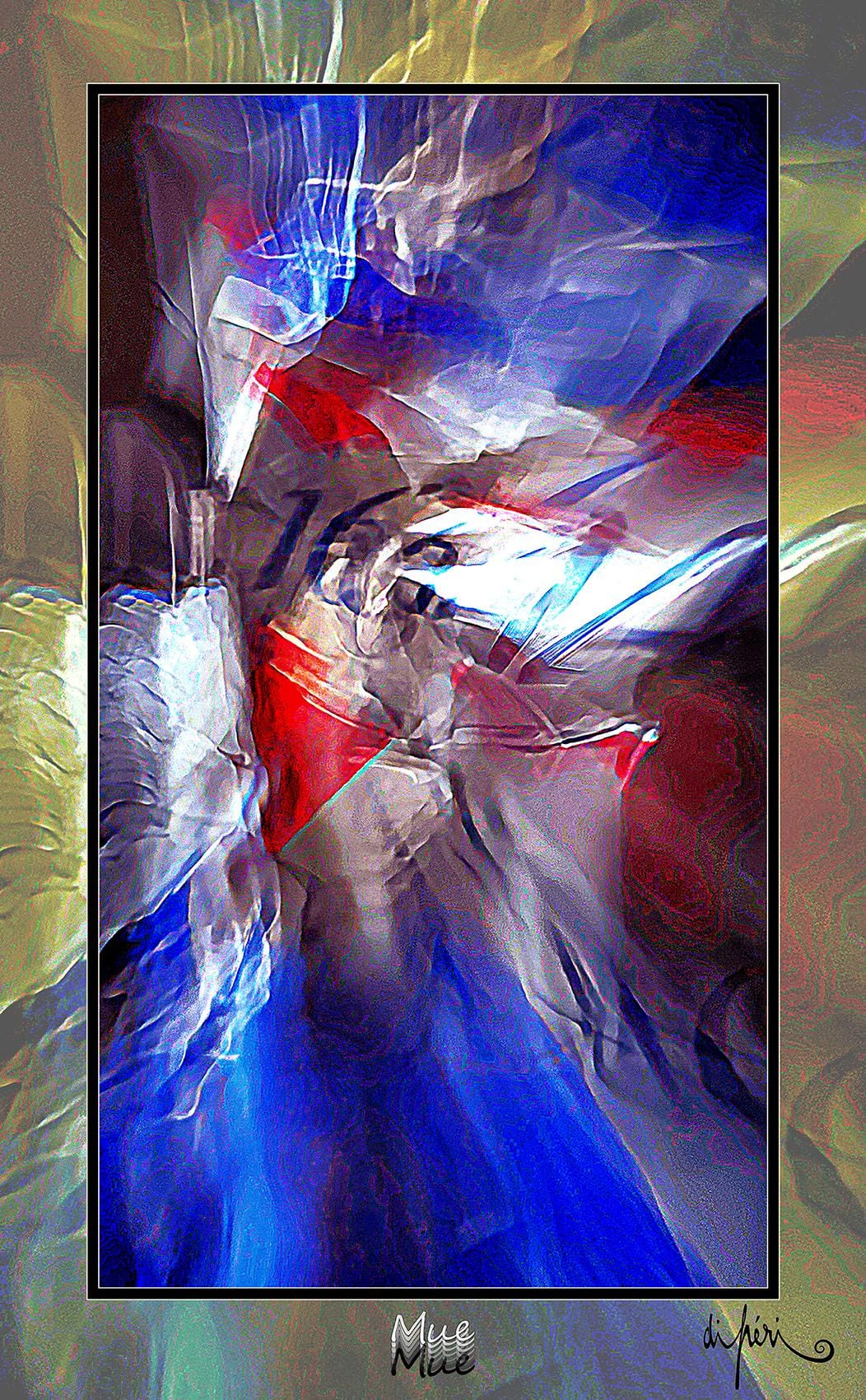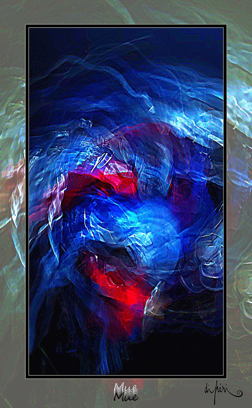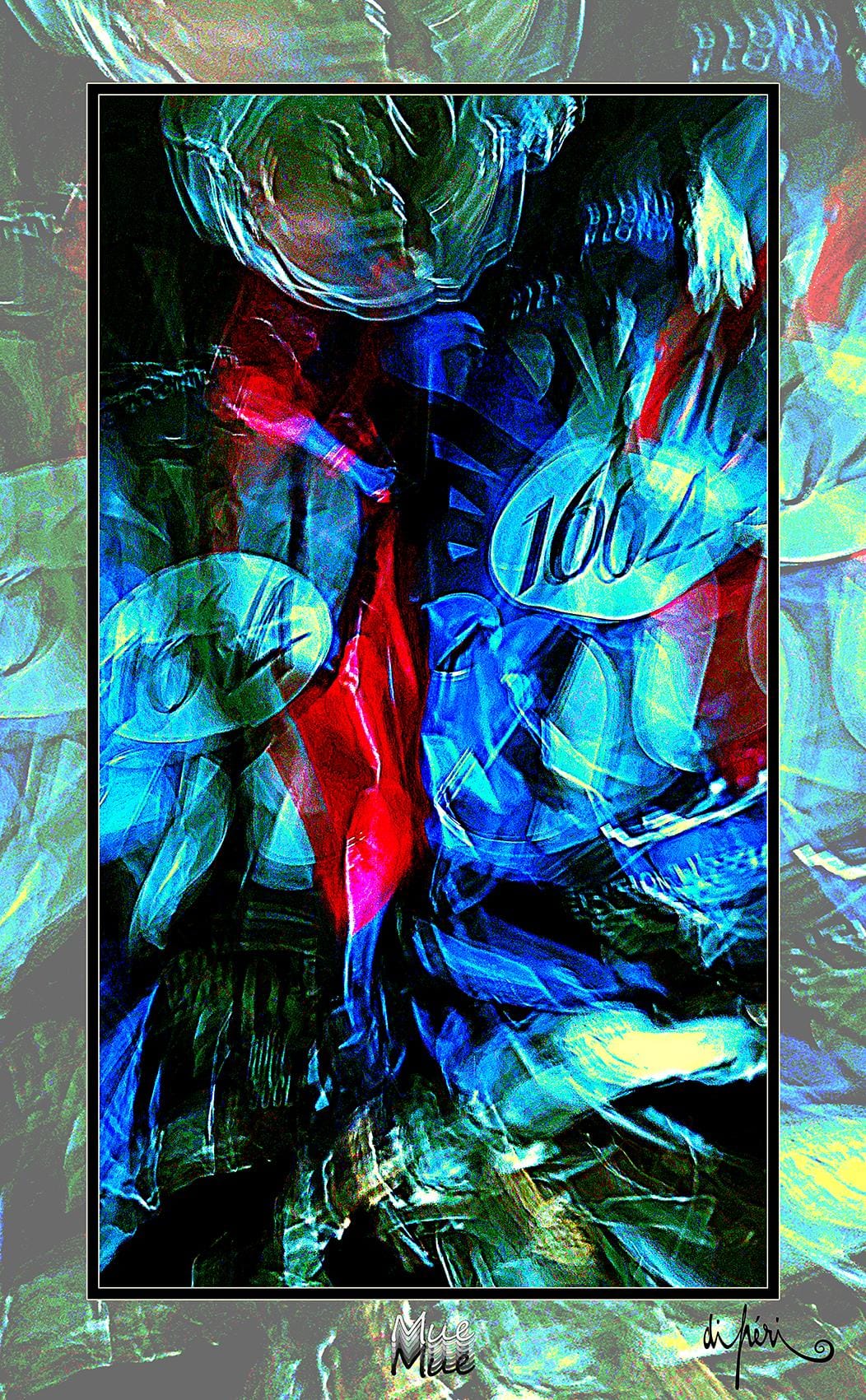 NOTA : tout comme les cadres, les reflets dus au plexiglas, qui n’est pas seulement une matière de protection, font partie intégrante de l’œuvre. Ils en prolongent et en surlignent le sens. Ils ont en charge de contextualiser l’effervescence présentielle de l’image. Le choix délibéré de cette matière de protection à effet miroir, suggère à elle seule, une mise en spatialité plus factuelle que virtuelle.