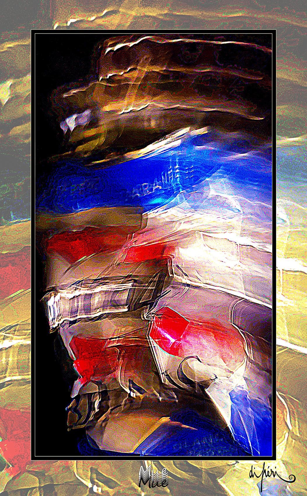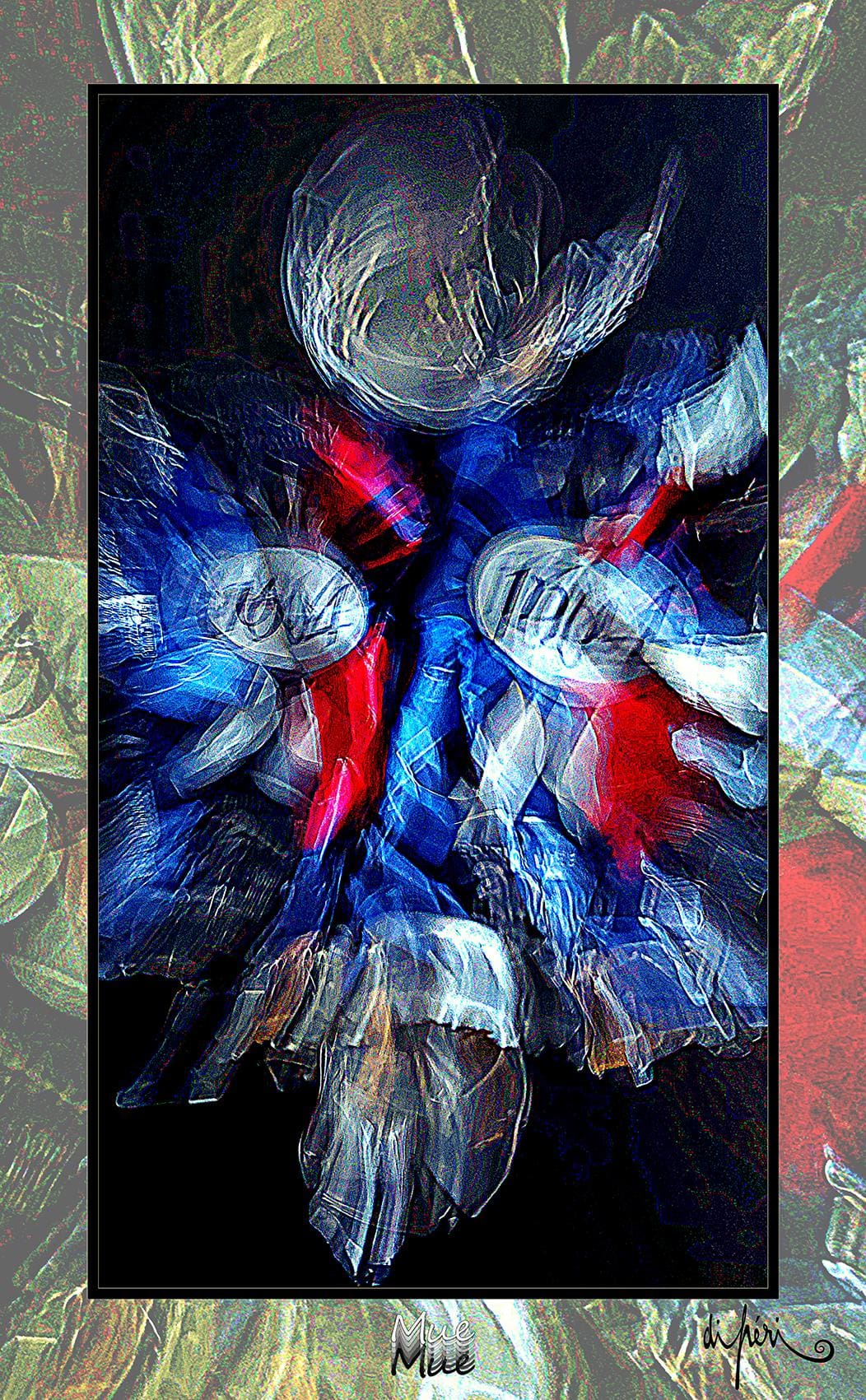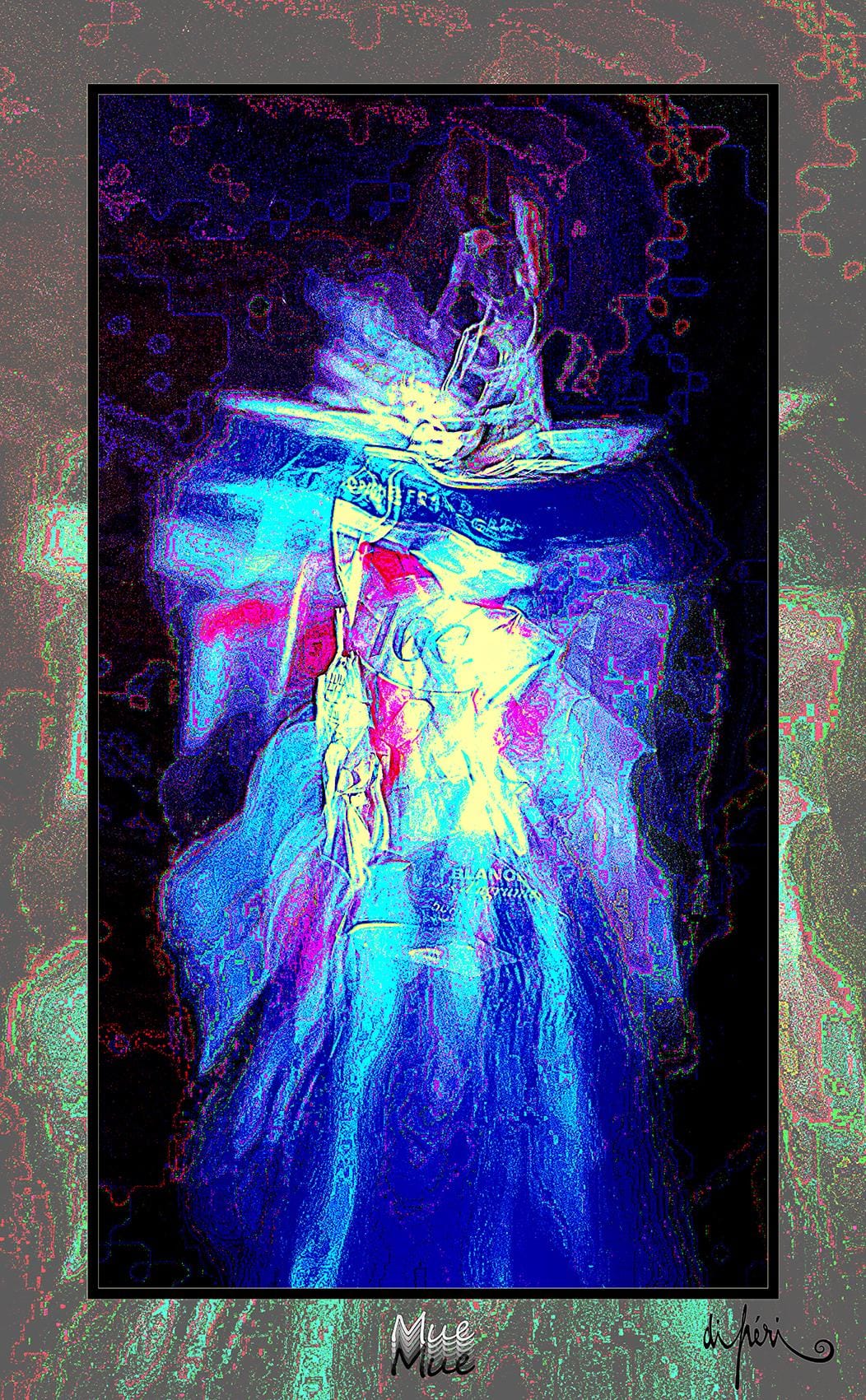 NOTA : tout comme les cadres, les reflets dus au plexiglas, qui n’est pas seulement une matière de protection, font partie intégrante de l’œuvre. Ils en prolongent et en surlignent le sens. Ils ont en charge de contextualiser l’effervescence présentielle de l’image. Le choix délibéré de cette matière de protection à effet miroir, suggère à elle seule, une mise en spatialité plus factuelle que virtuelle.