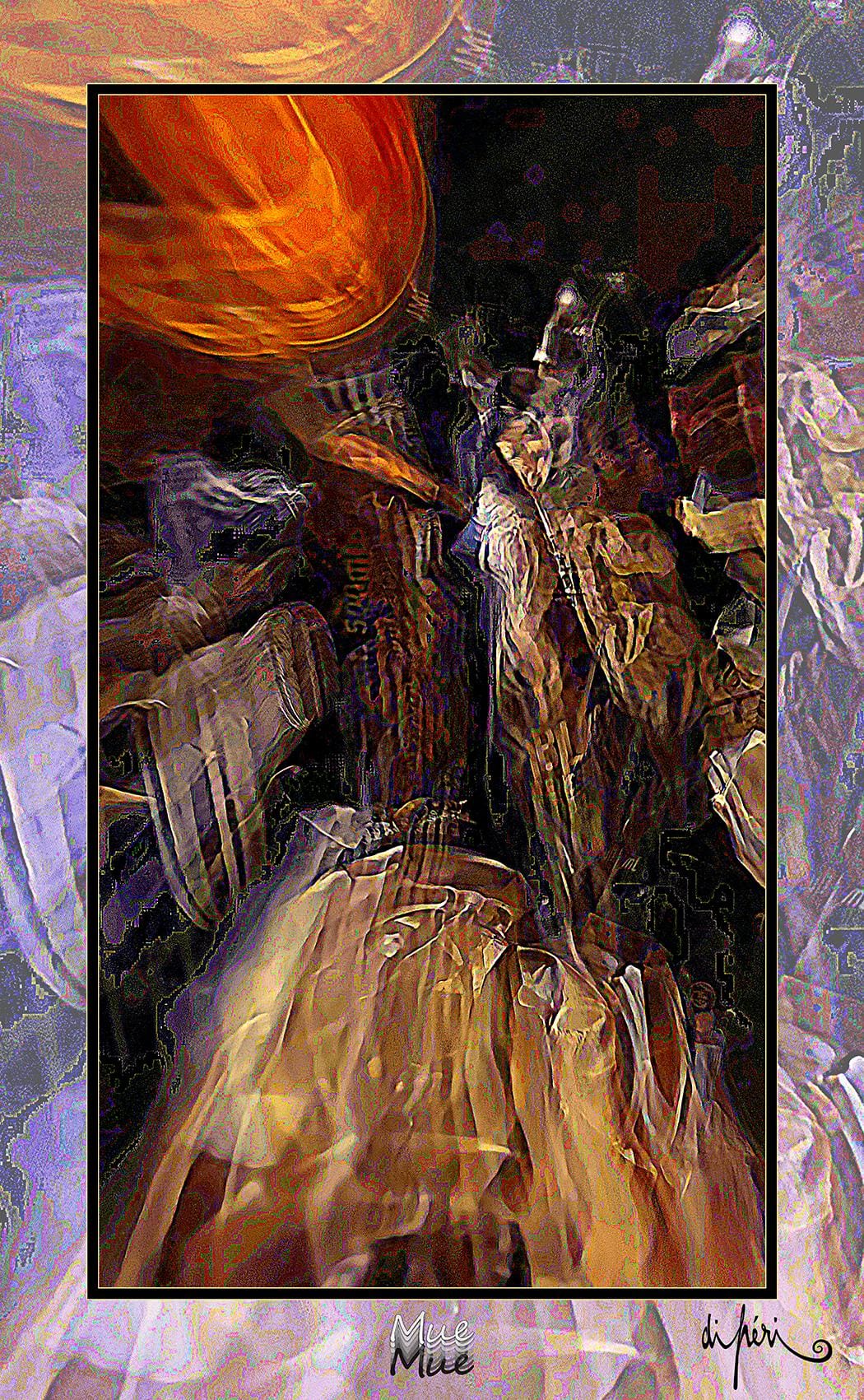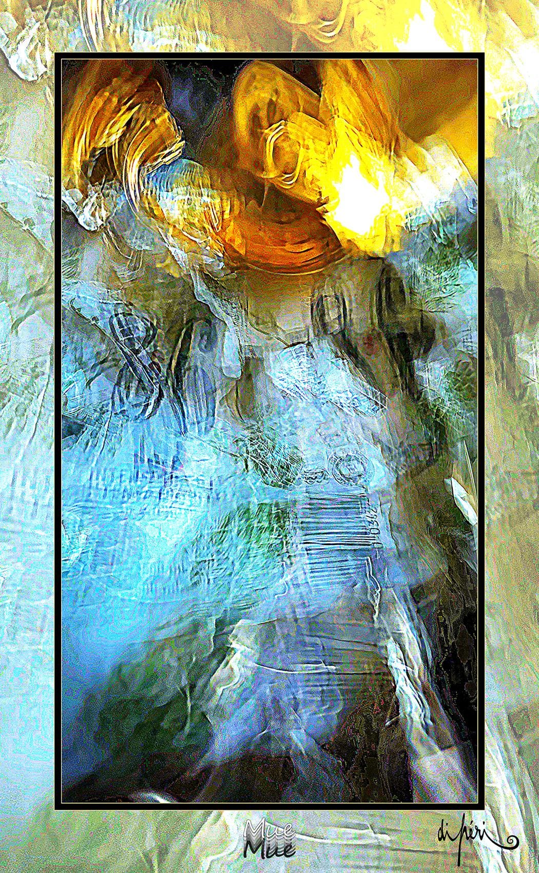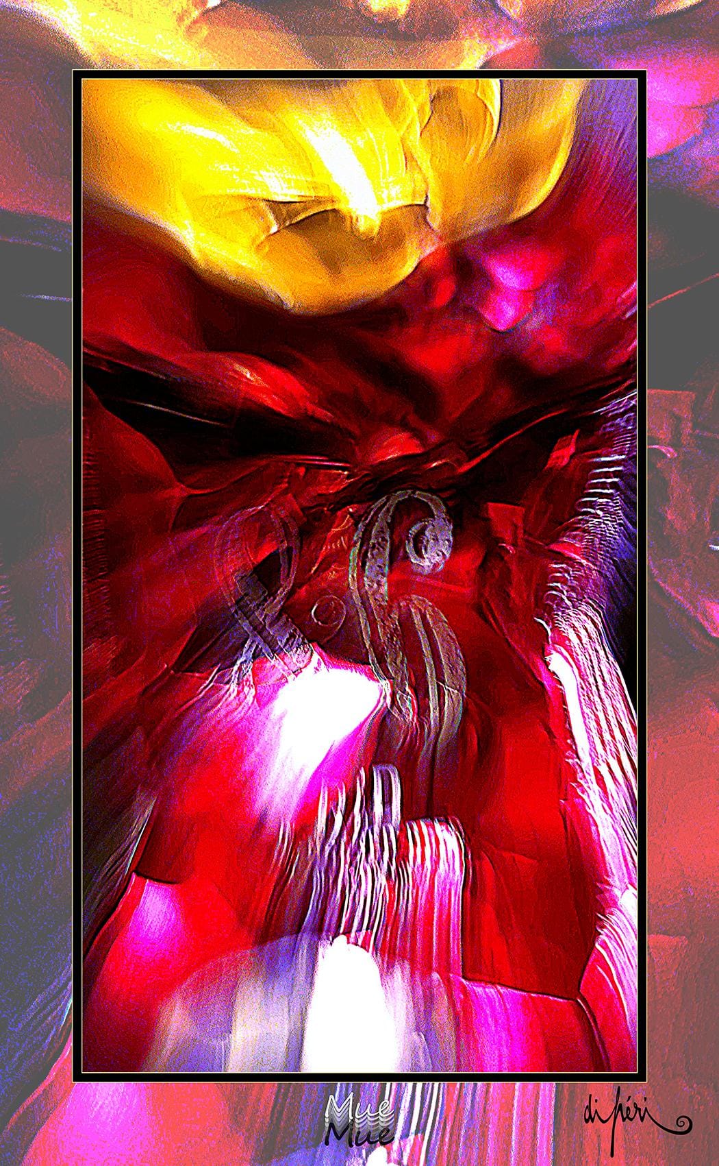 NOTA : tout comme les cadres, les reflets dus au plexiglas, qui n’est pas seulement une matière de protection, font partie intégrante de l’œuvre. Ils en prolongent et en surlignent le sens. Ils ont en charge de contextualiser l’effervescence présentielle de l’image. Le choix délibéré de cette matière de protection à effet miroir, suggère à elle seule, une mise en spatialité plus factuelle que virtuelle.
