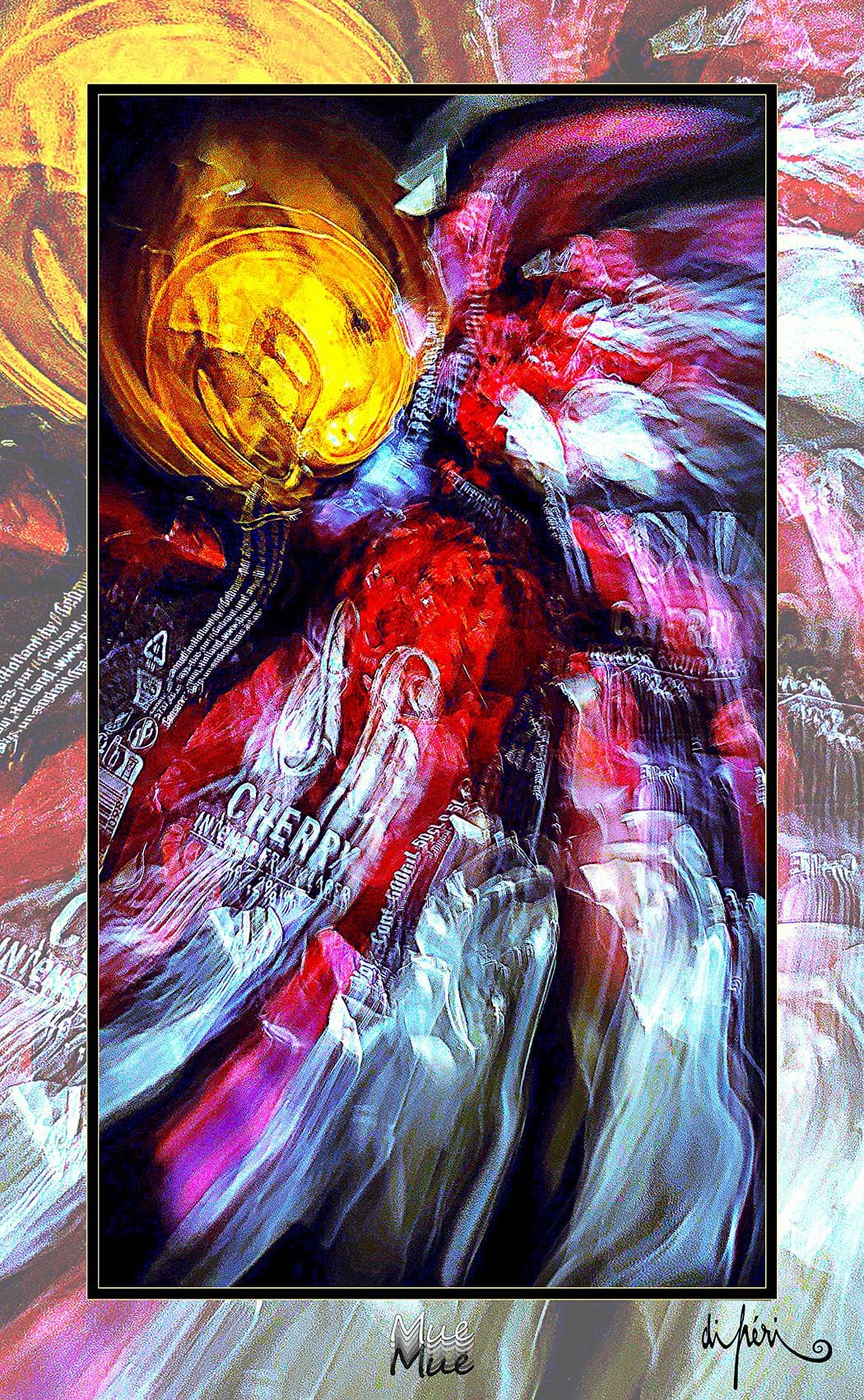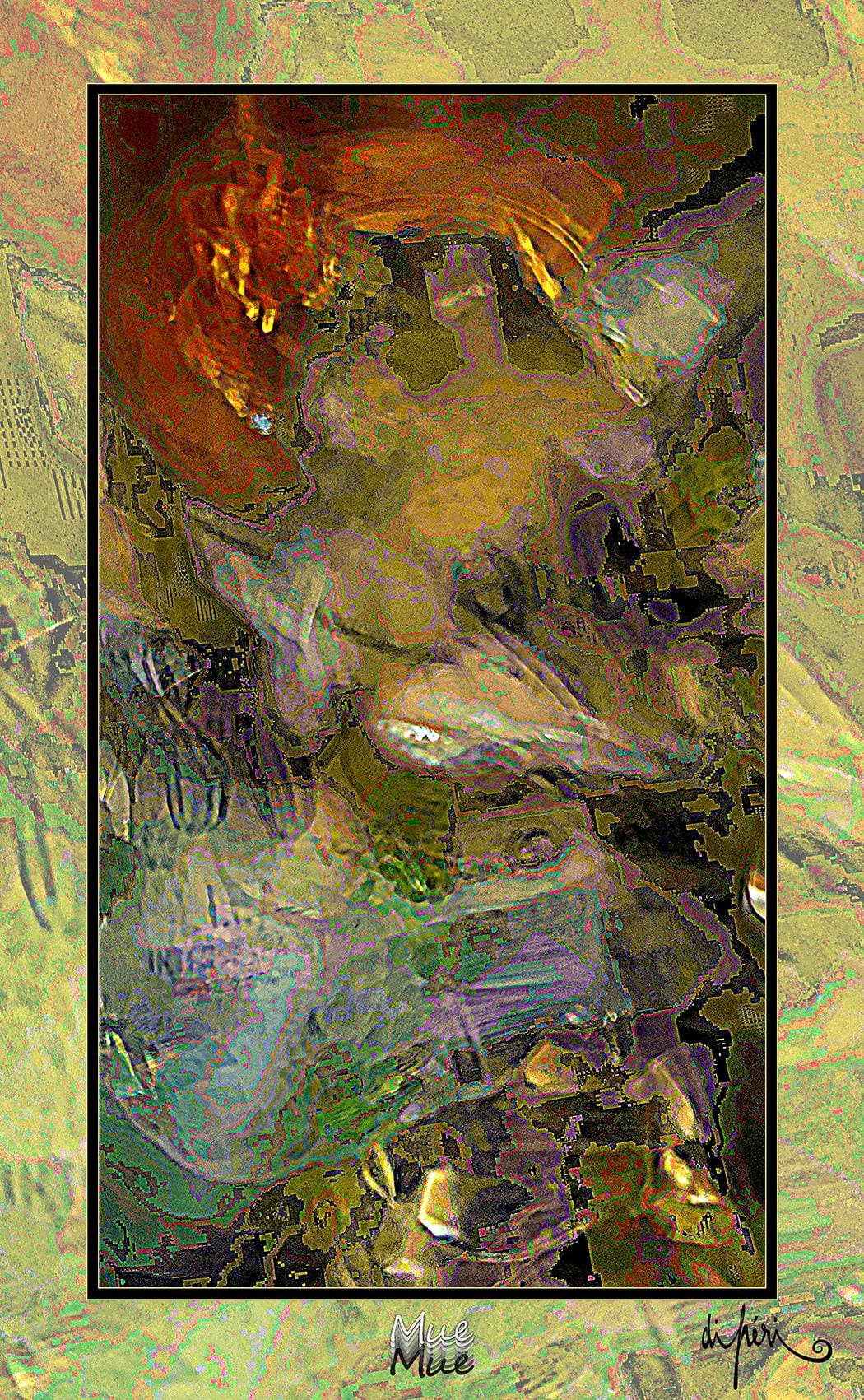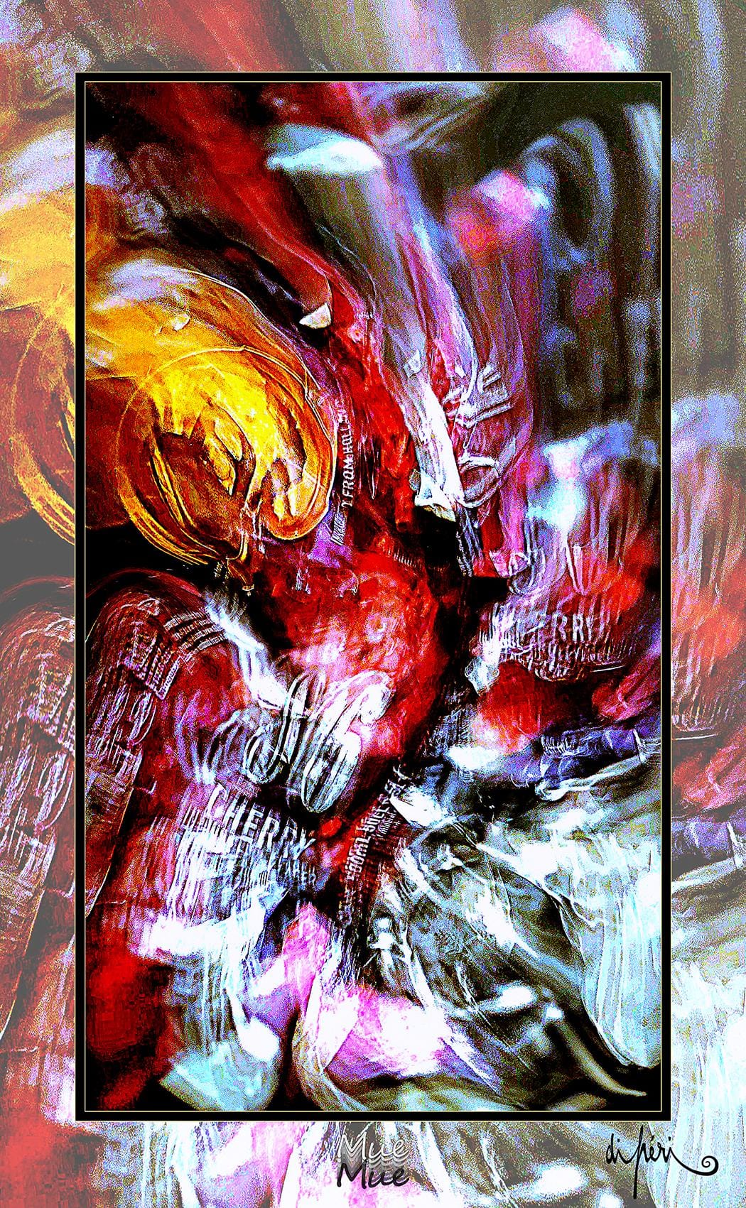 NOTA : tout comme les cadres, les reflets dus au plexiglas, qui n’est pas seulement une matière de protection, font partie intégrante de l’œuvre. Ils en prolongent et en surlignent le sens. Ils ont en charge de contextualiser l’effervescence présentielle de l’image. Le choix délibéré de cette matière de protection à effet miroir, suggère à elle seule, une mise en spatialité plus factuelle que virtuelle.