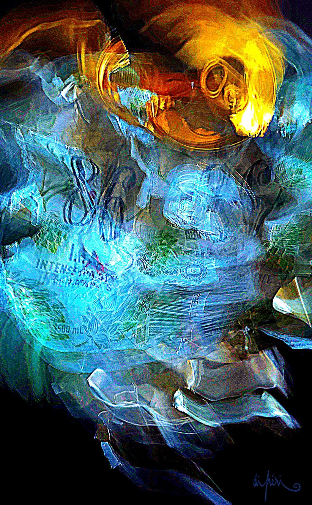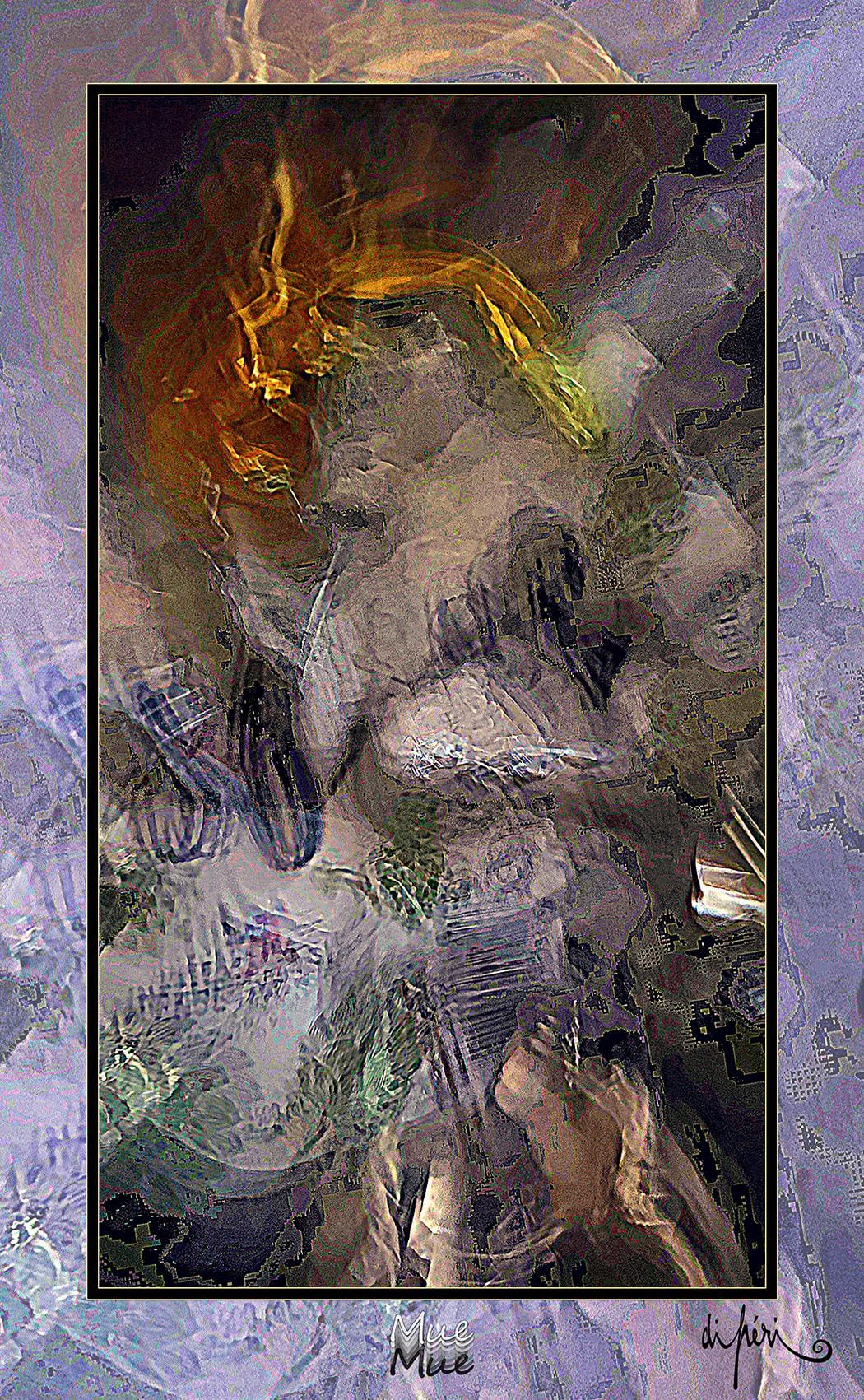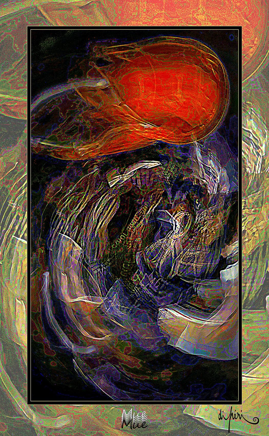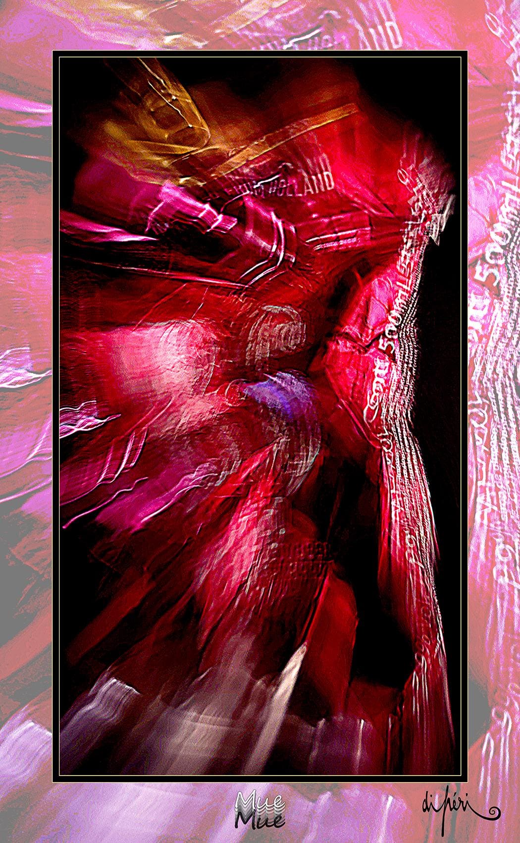 NOTA : tout comme les cadres, les reflets dus au plexiglas, qui n’est pas seulement une matière de protection, font partie intégrante de l’œuvre. Ils en prolongent et en surlignent le sens. Ils ont en charge de contextualiser l’effervescence présentielle de l’image. Le choix délibéré de cette matière de protection à effet miroir, suggère à elle seule, une mise en spatialité plus factuelle que virtuelle.