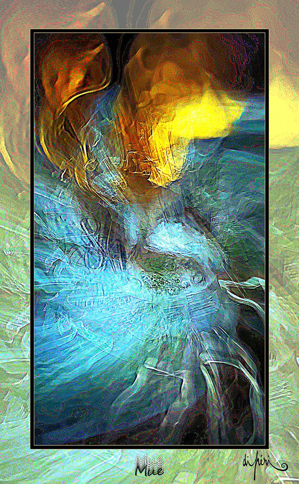 En effet, des compositions « appellent » à un trait d’union diffus avec l’environnement et avec le futur. Tel un écho, ce cadre apporte profondeur symbolique et intensité sémiologique . Son « aura diffractive » sertit l’image focale de sa résonance centrifuge afin d’évoquer une forme d’acte lyrique déjà transitionnel.
