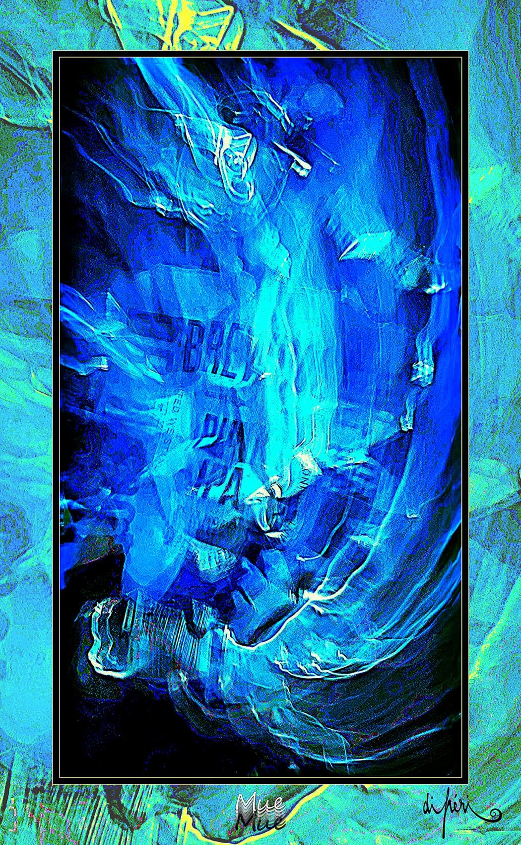 NOTA : tout comme les cadres, les reflets dus au plexiglas, qui n’est pas seulement une matière de protection, font partie intégrante de l’œuvre. Ils en prolongent et en surlignent le sens. Ils ont en charge de contextualiser l’effervescence présentielle de l’image. Le choix délibéré de cette matière de protection à effet miroir, suggère à elle seule, une mise en spatialité plus factuelle que virtuelle.