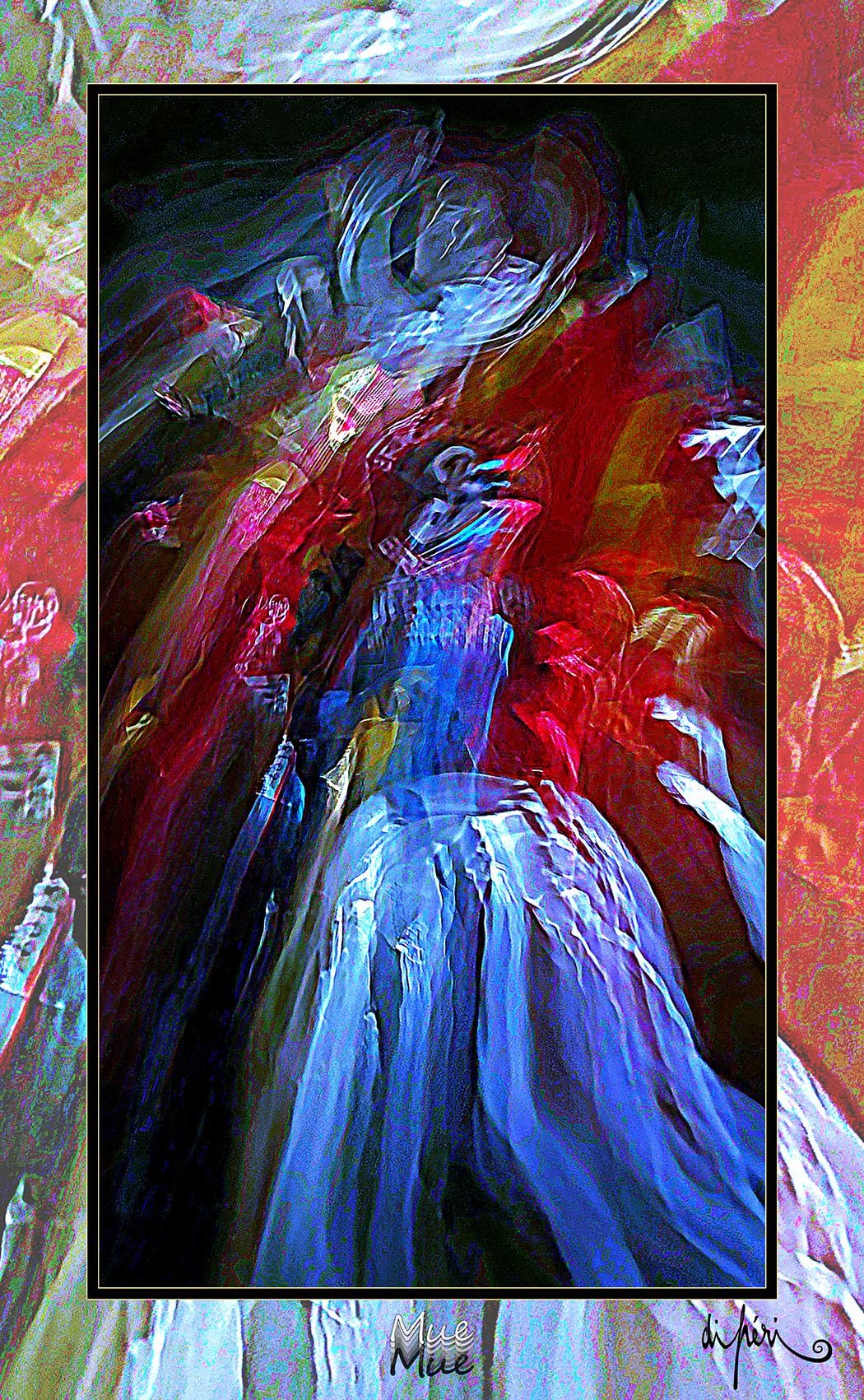 NOTA : tout comme les cadres, les reflets dus au plexiglas, qui n’est pas seulement une matière de protection, font partie intégrante de l’œuvre. Ils en prolongent et en surlignent le sens. Ils ont en charge de contextualiser l’effervescence présentielle de l’image. Le choix délibéré de cette matière de protection à effet miroir, suggère à elle seule, une mise en spatialité plus factuelle que virtuelle.