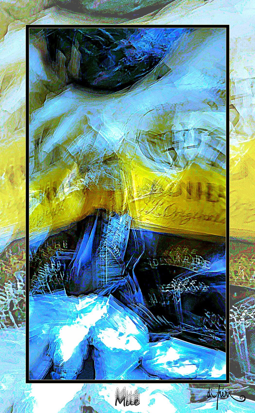NOTA : tout comme les cadres, les reflets dus au plexiglas, qui n’est pas seulement une matière de protection, font partie intégrante de l’œuvre. Ils en prolongent et en surlignent le sens. Ils ont en charge de contextualiser l’effervescence présentielle de l’image. Le choix délibéré de cette matière de protection à effet miroir, suggère à elle seule, une mise en spatialité plus factuelle que virtuelle.