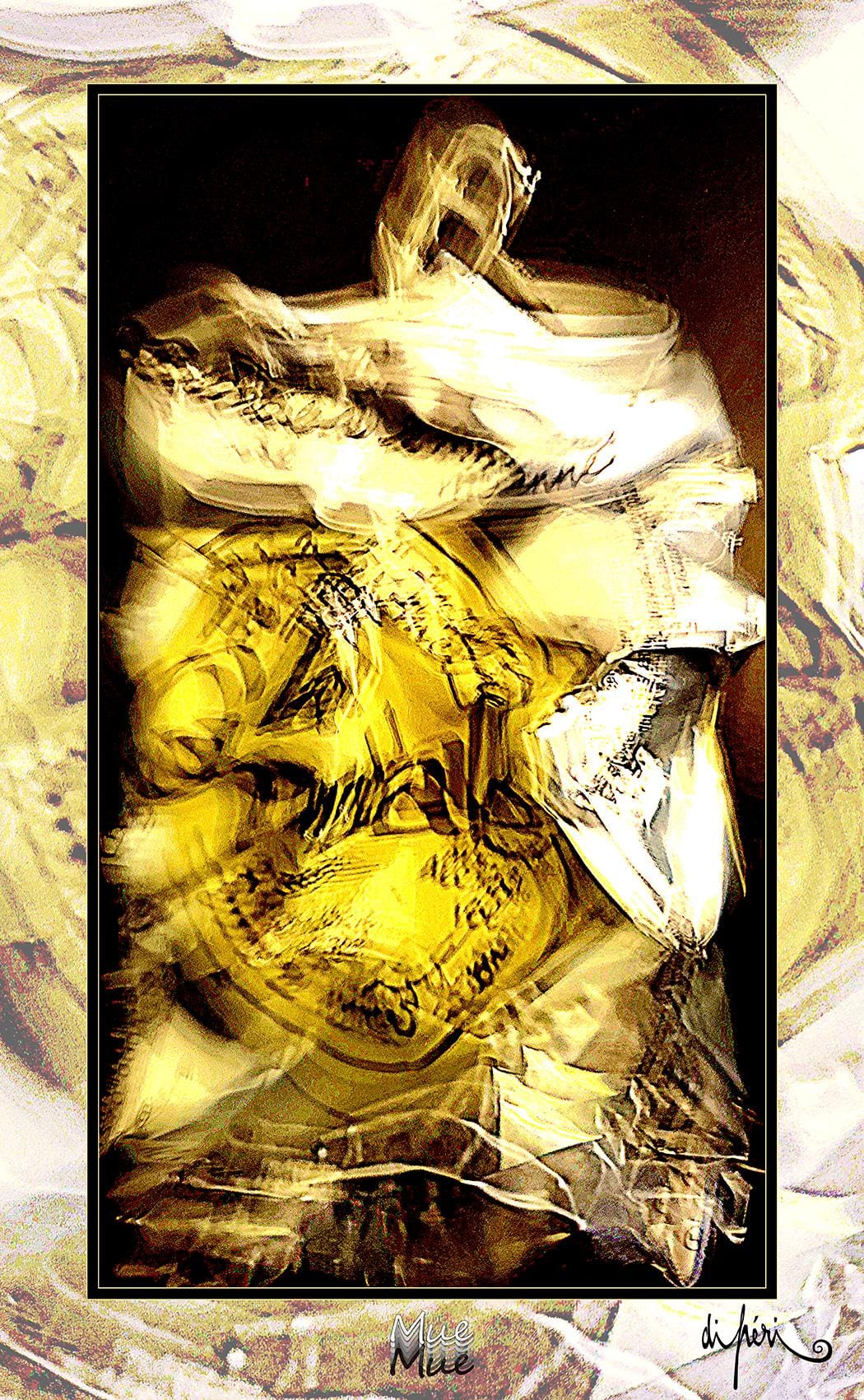 NOTA : tout comme les cadres, les reflets dus au plexiglas, qui n’est pas seulement une matière de protection, font partie intégrante de l’œuvre. Ils en prolongent et en surlignent le sens. Ils ont en charge de contextualiser l’effervescence présentielle de l’image. Le choix délibéré de cette matière de protection à effet miroir, suggère à elle seule, une mise en spatialité plus factuelle que virtuelle.