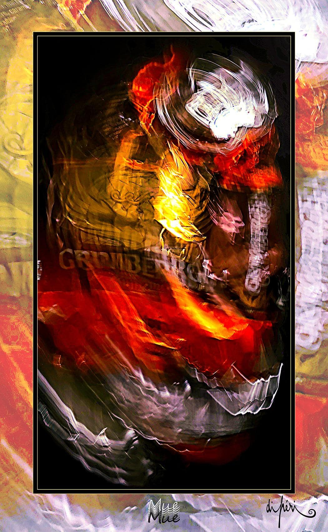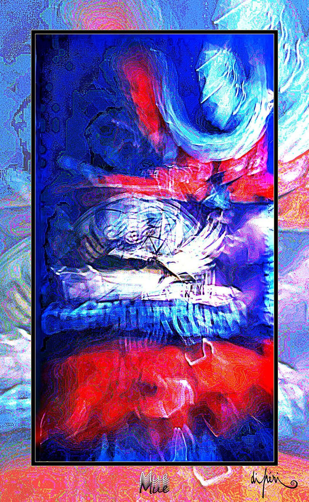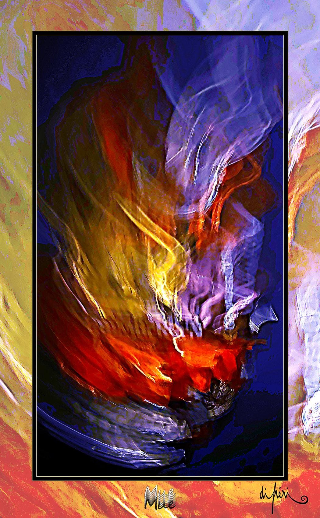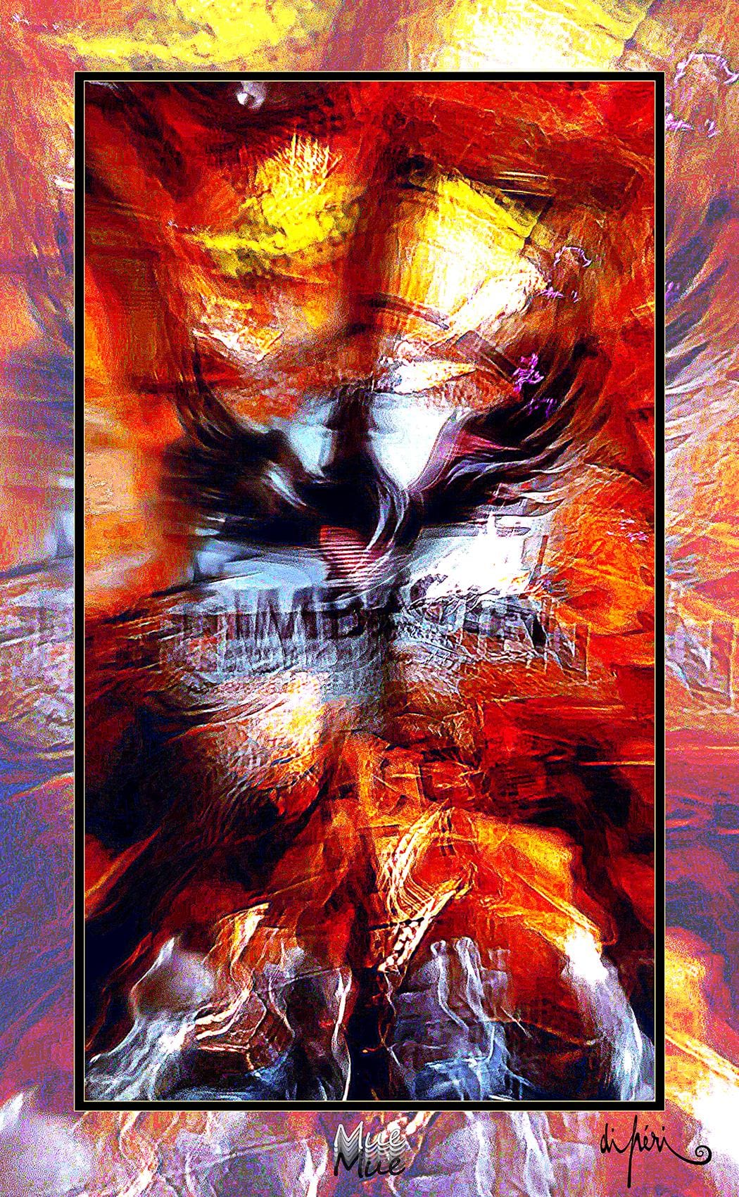 NOTA : tout comme les cadres, les reflets dus au plexiglas, qui n’est pas seulement une matière de protection, font partie intégrante de l’œuvre. Ils en prolongent et en surlignent le sens. Ils ont en charge de contextualiser l’effervescence présentielle de l’image. Le choix délibéré de cette matière de protection à effet miroir, suggère à elle seule, une mise en spatialité plus factuelle que virtuelle.