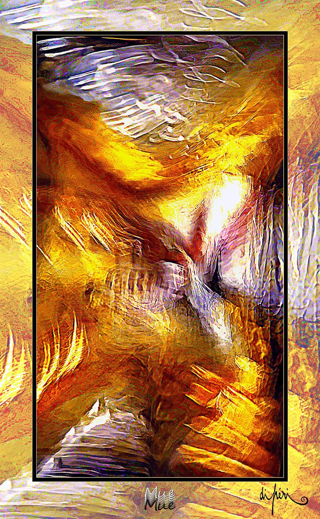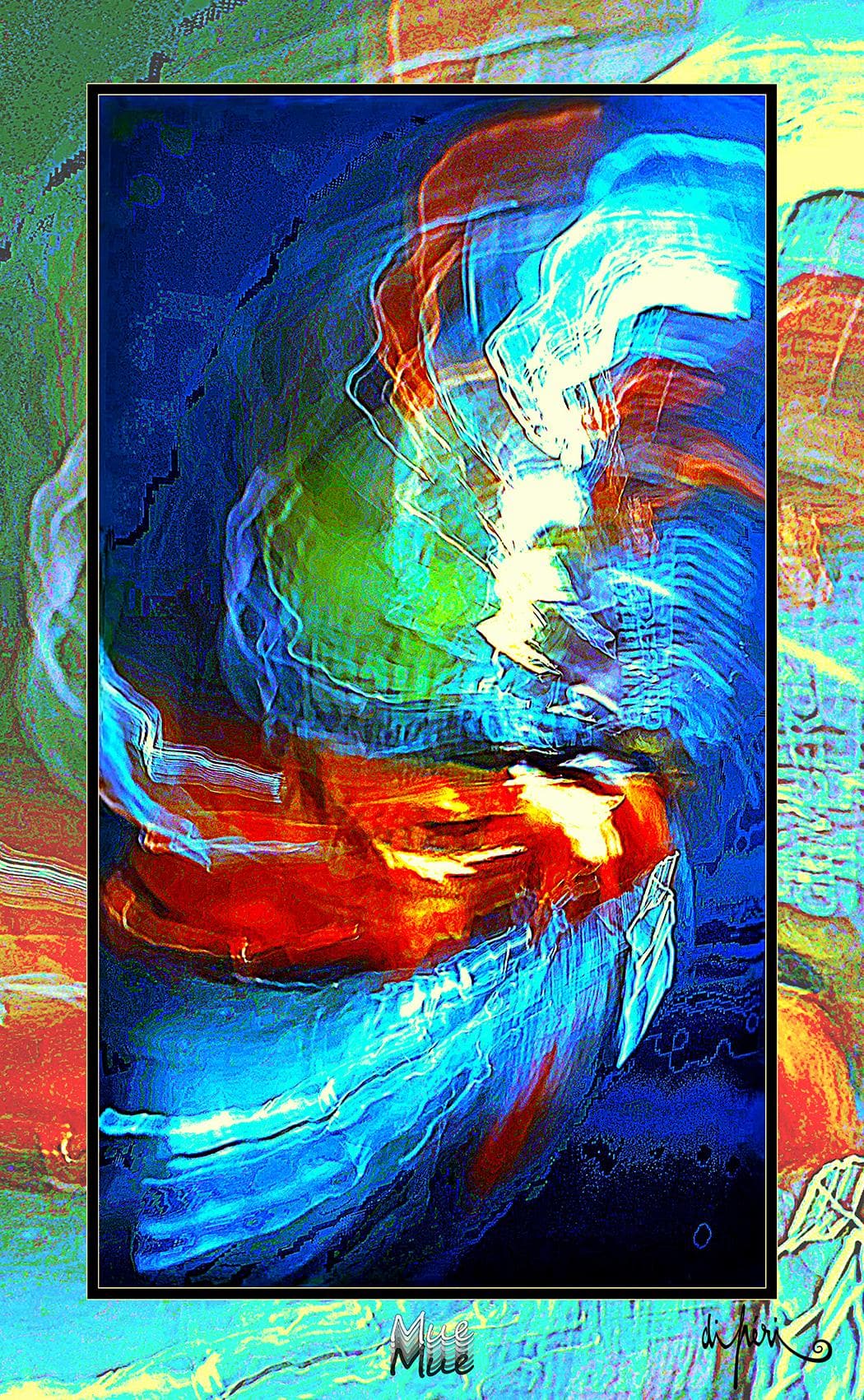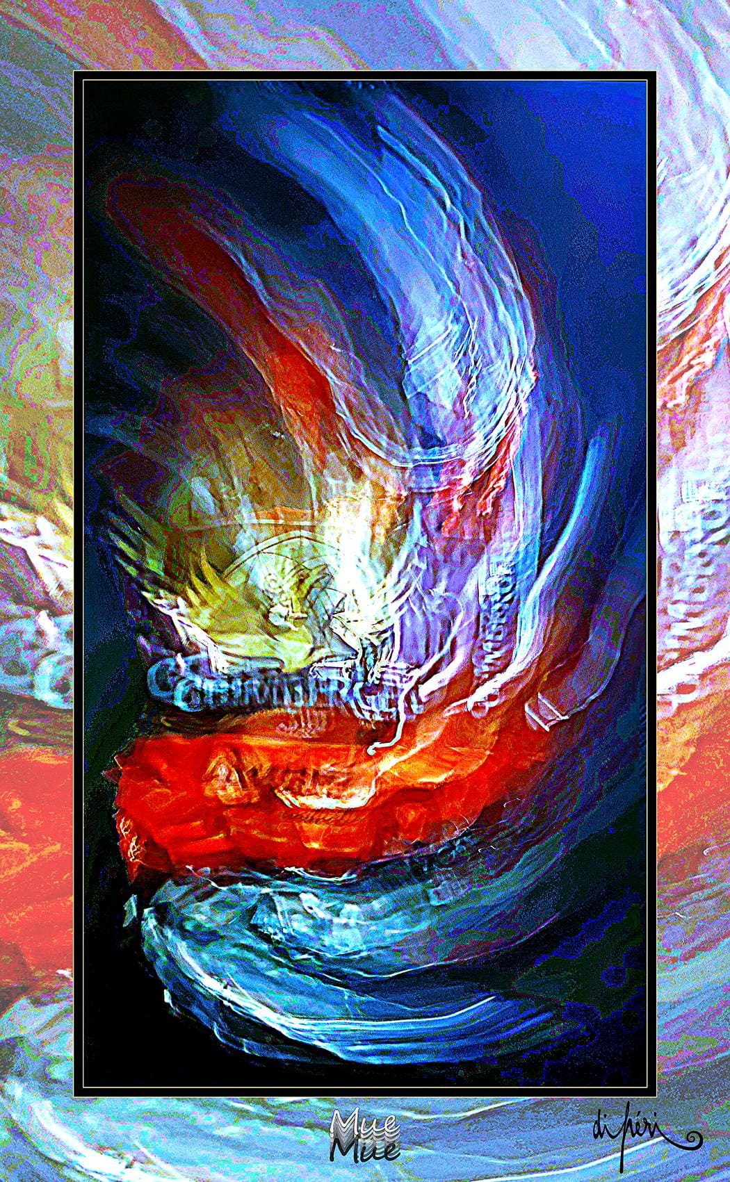 NOTA : tout comme les cadres, les reflets dus au plexiglas, qui n’est pas seulement une matière de protection, font partie intégrante de l’œuvre. Ils en prolongent et en surlignent le sens. Ils ont en charge de contextualiser l’effervescence présentielle de l’image. Le choix délibéré de cette matière de protection à effet miroir, suggère à elle seule, une mise en spatialité plus factuelle que virtuelle.