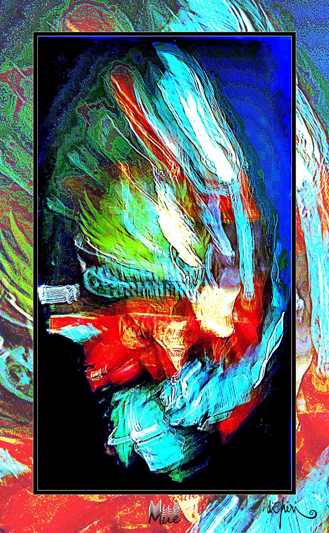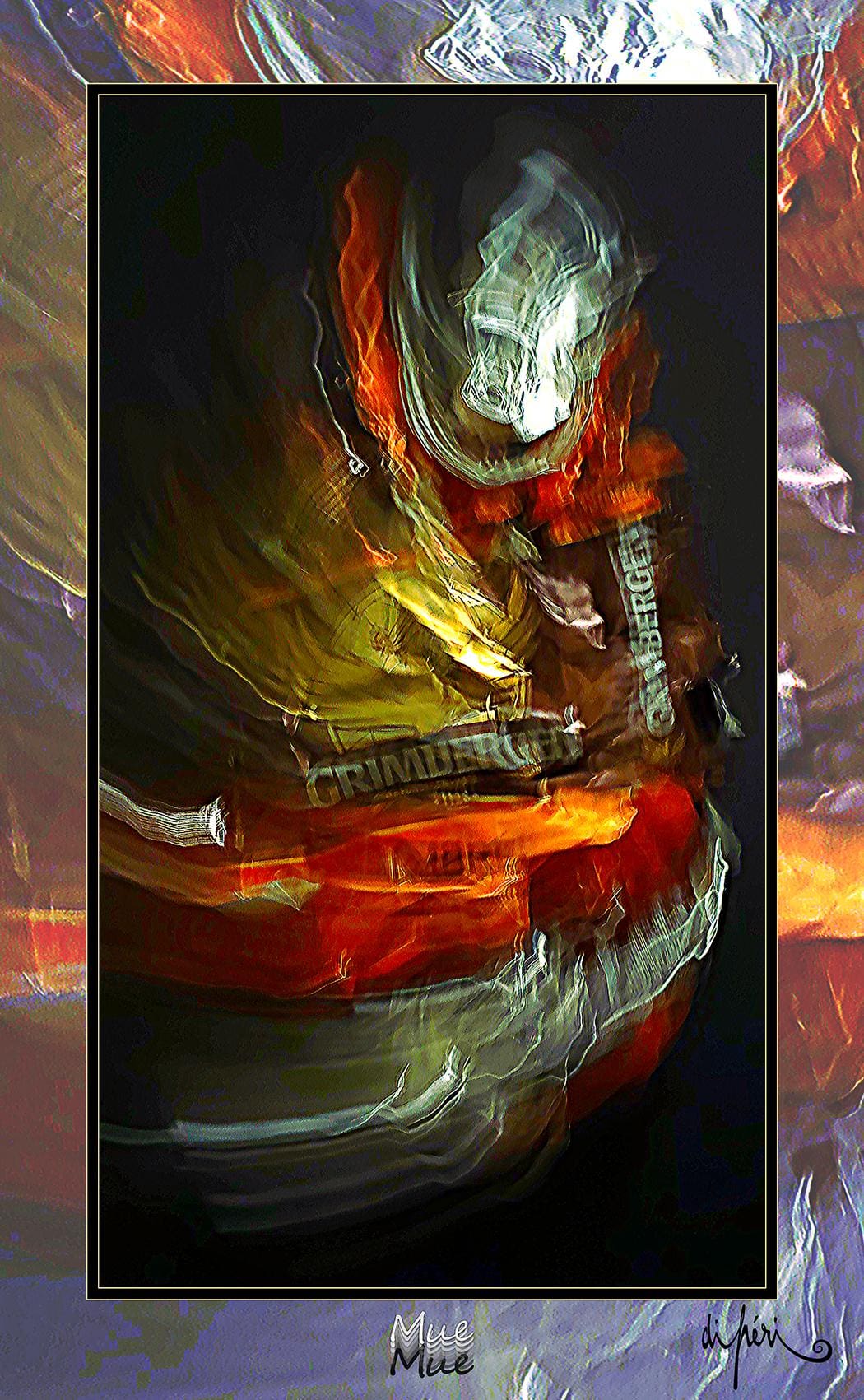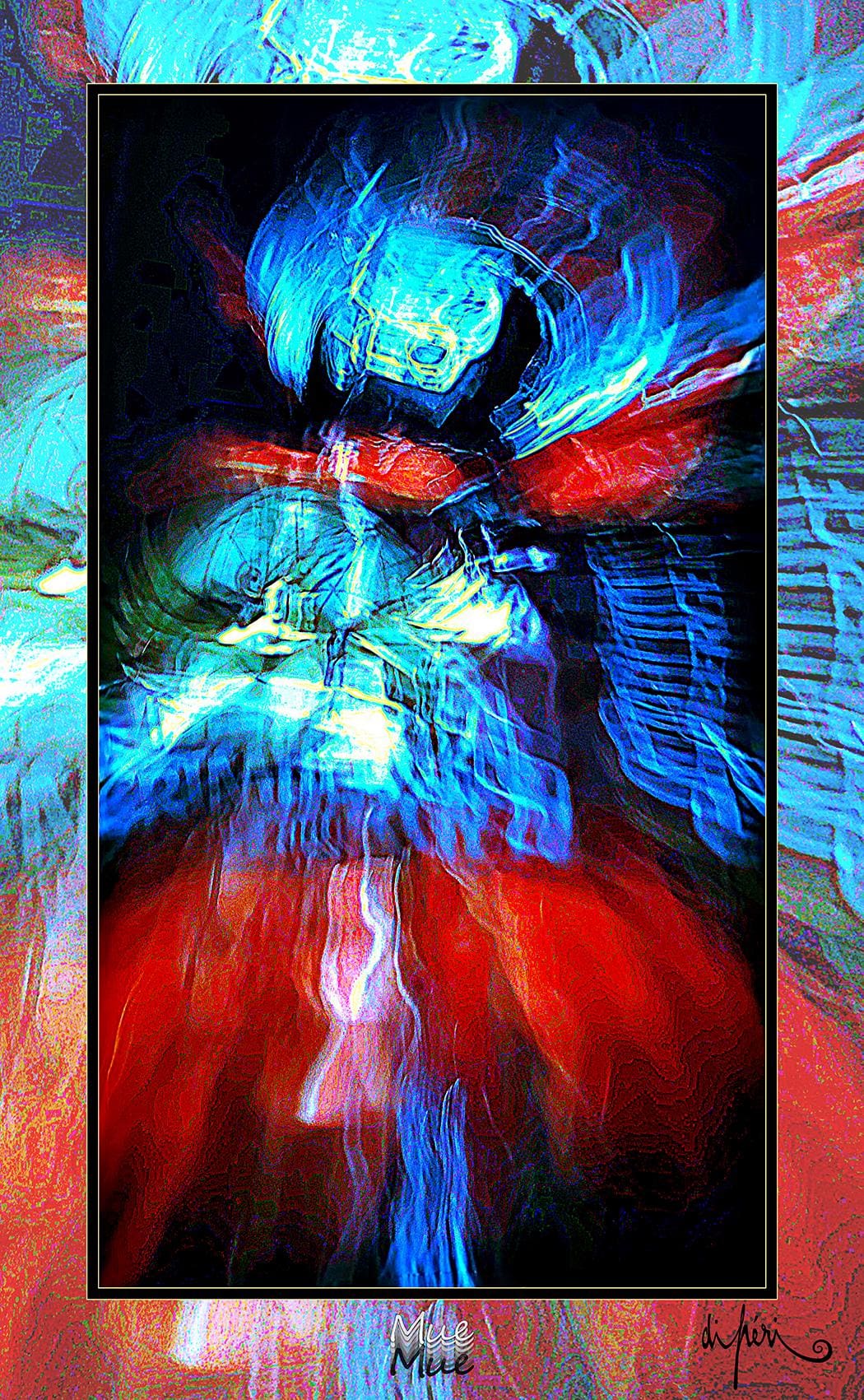 NOTA : tout comme les cadres, les reflets dus au plexiglas, qui n’est pas seulement une matière de protection, font partie intégrante de l’œuvre. Ils en prolongent et en surlignent le sens. Ils ont en charge de contextualiser l’effervescence présentielle de l’image. Le choix délibéré de cette matière de protection à effet miroir, suggère à elle seule, une mise en spatialité plus factuelle que virtuelle.