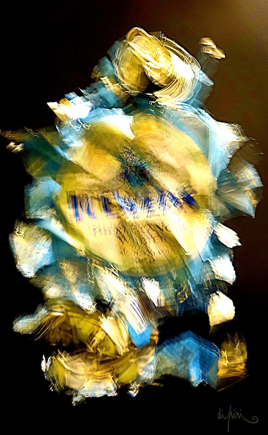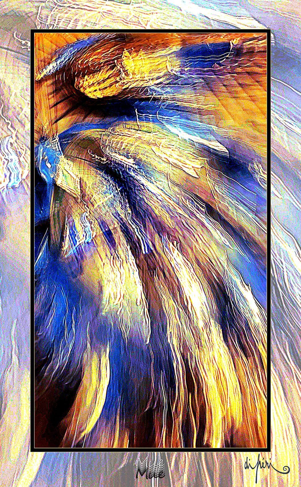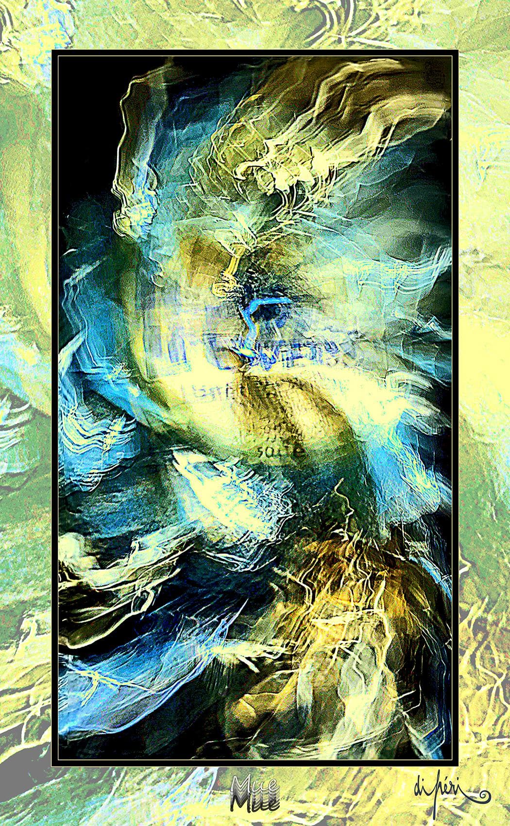 NOTA : tout comme les cadres, les reflets dus au plexiglas, qui n’est pas seulement une matière de protection, font partie intégrante de l’œuvre. Ils en prolongent et en surlignent le sens. Ils ont en charge de contextualiser l’effervescence présentielle de l’image. Le choix délibéré de cette matière de protection à effet miroir, suggère à elle seule, une mise en spatialité plus factuelle que virtuelle.
