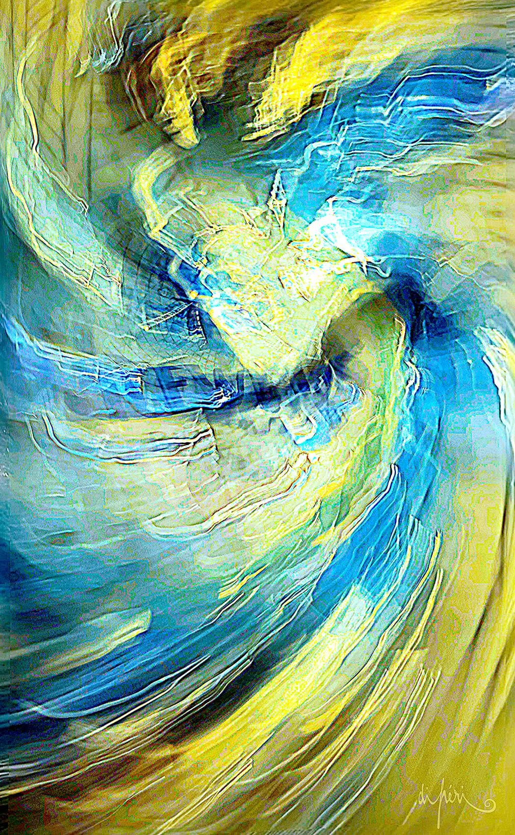 En effet, des compositions « appellent » à un trait d’union diffus avec l’environnement et avec le futur. Tel un écho, ce cadre apporte profondeur symbolique et intensité sémiologique . Son « aura diffractive » sertit l’image focale de sa résonance centrifuge afin d’évoquer une forme d’acte lyrique déjà transitionnel.
