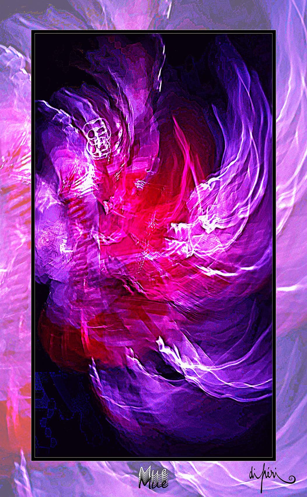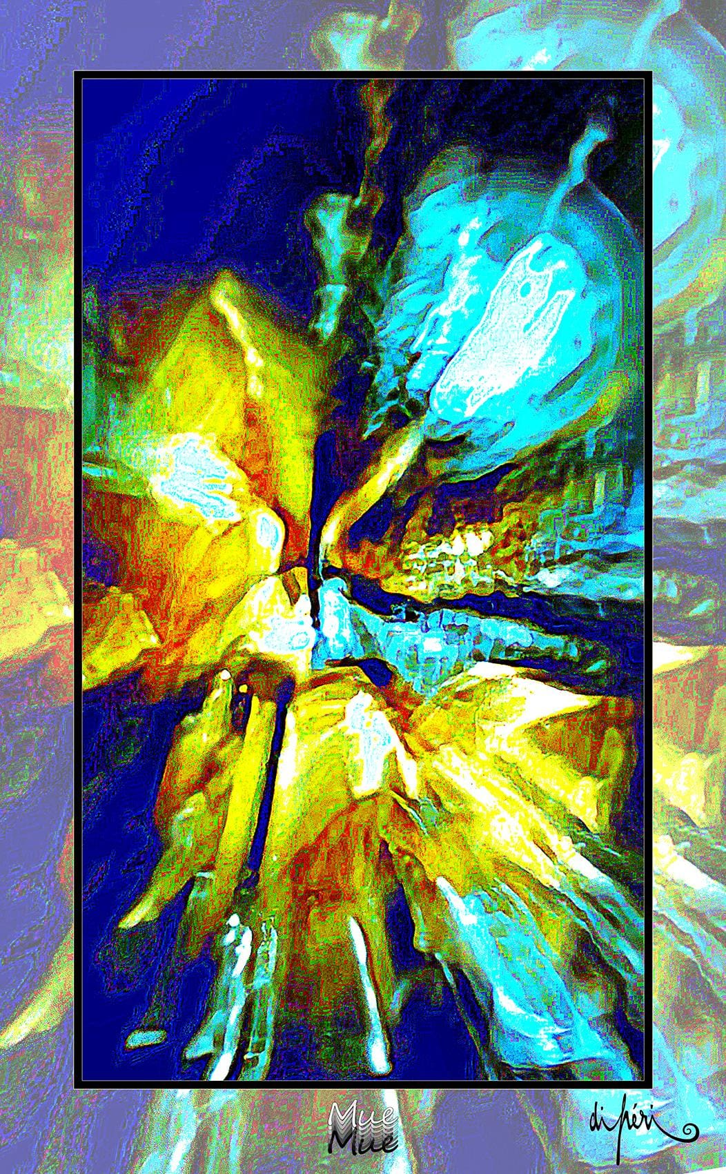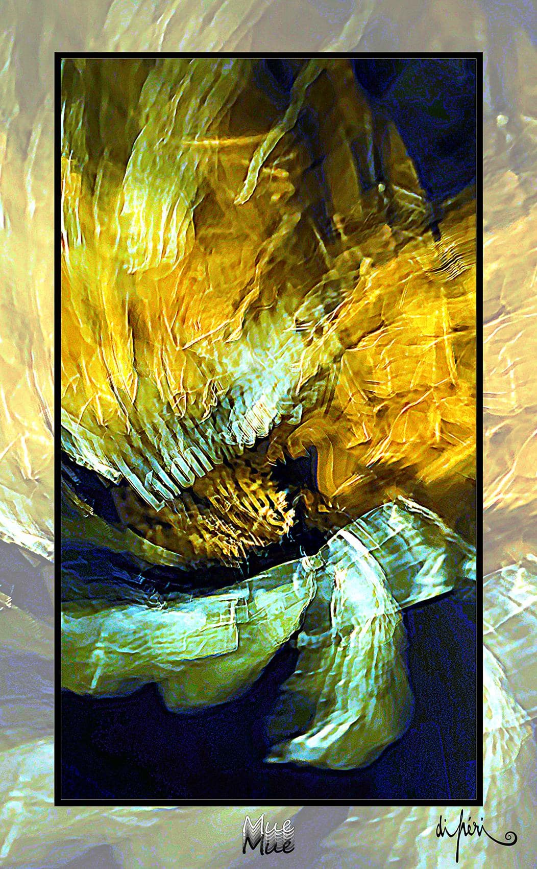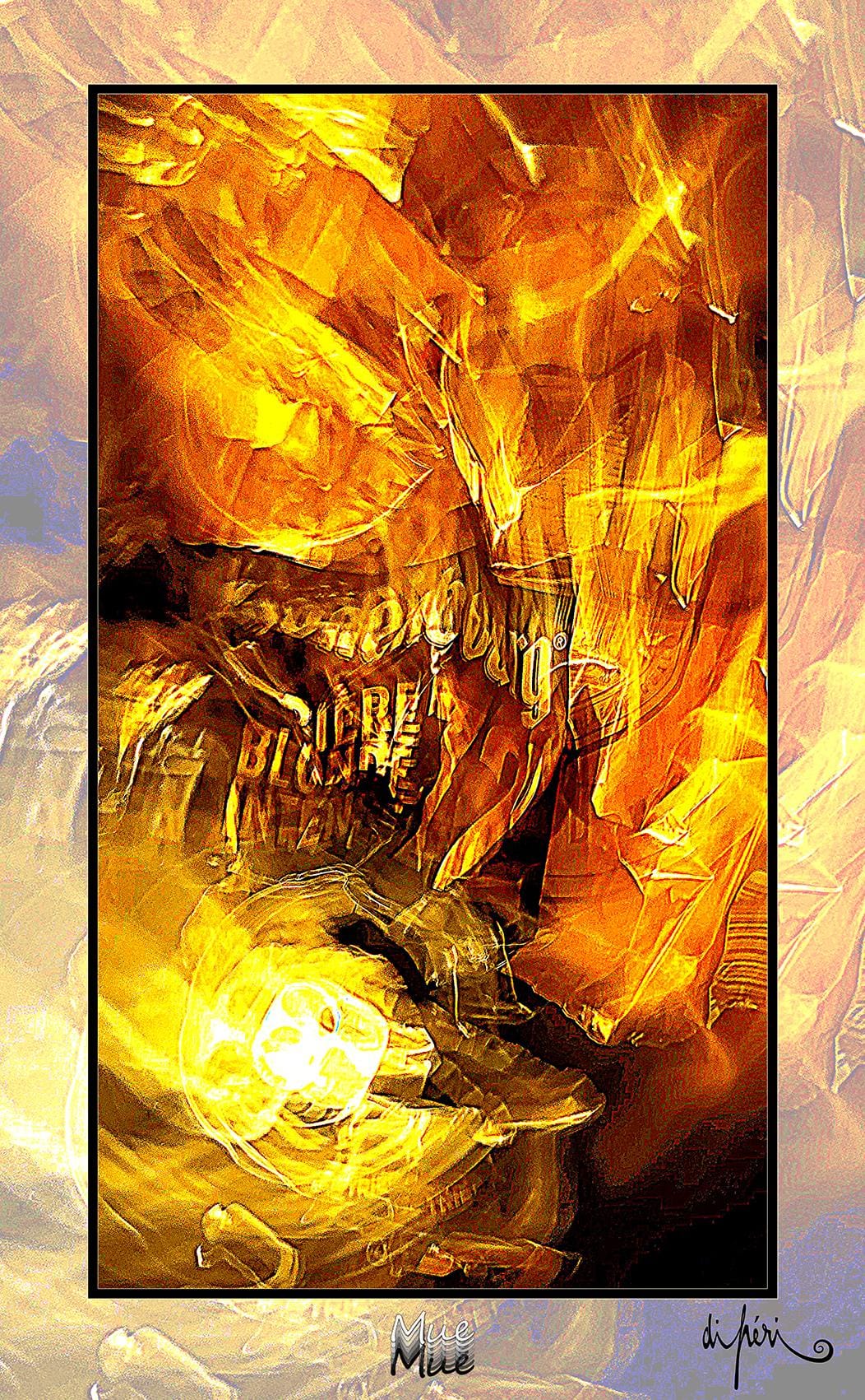 NOTA : tout comme les cadres, les reflets dus au plexiglas, qui n’est pas seulement une matière de protection, font partie intégrante de l’œuvre. Ils en prolongent et en surlignent le sens. Ils ont en charge de contextualiser l’effervescence présentielle de l’image. Le choix délibéré de cette matière de protection à effet miroir, suggère à elle seule, une mise en spatialité plus factuelle que virtuelle.