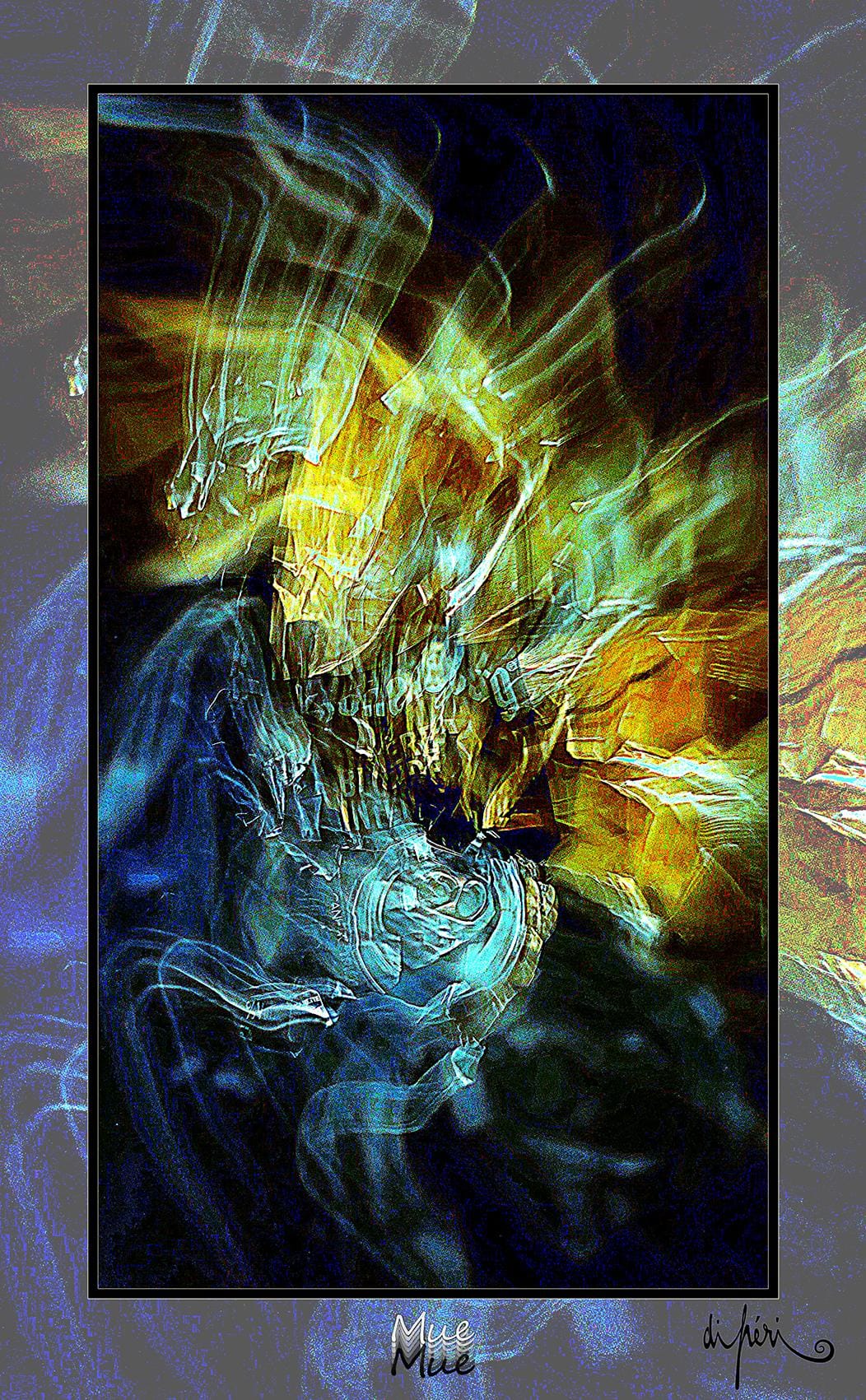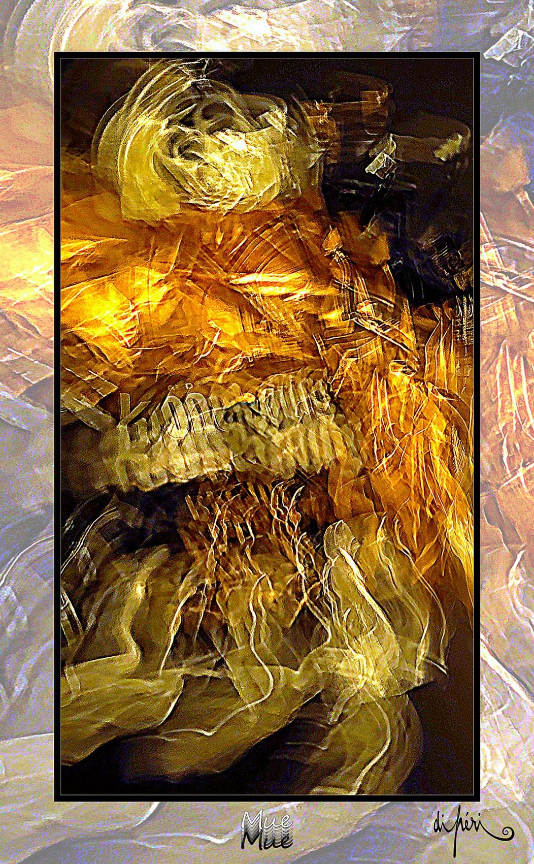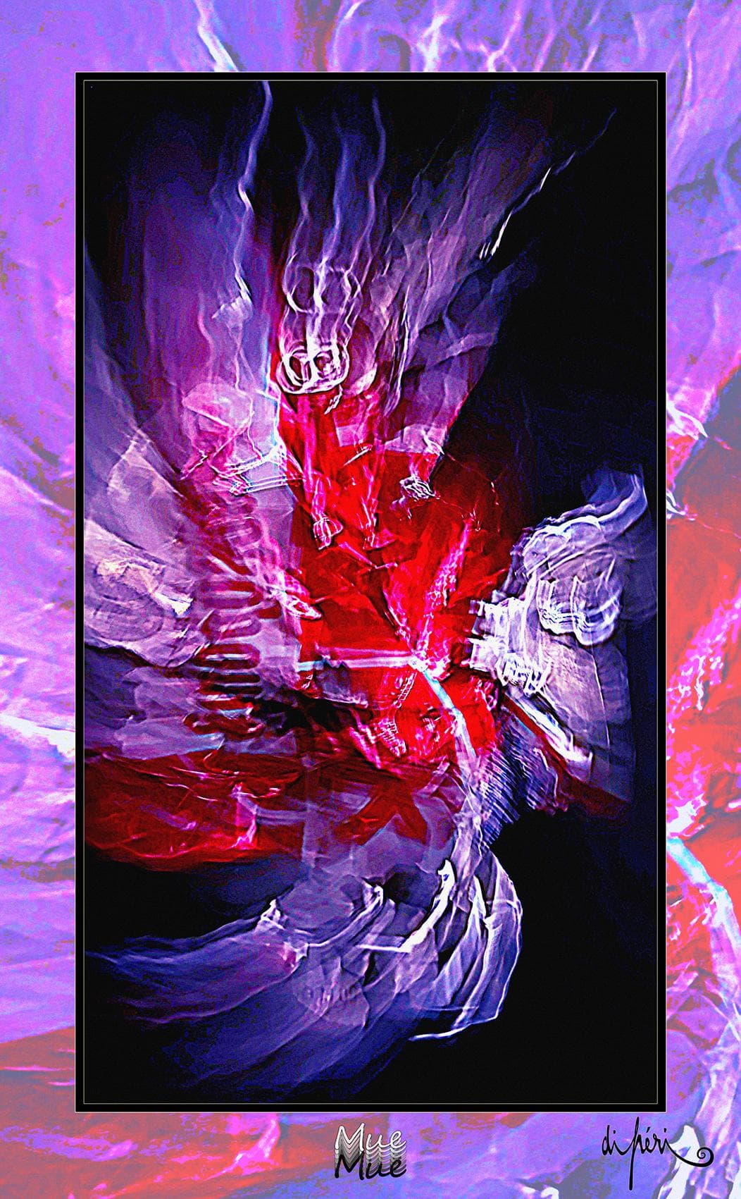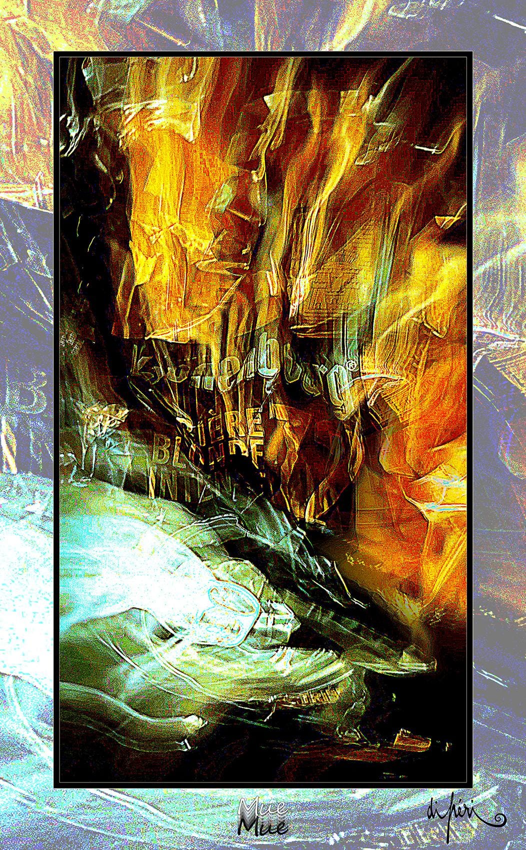 NOTA : tout comme les cadres, les reflets dus au plexiglas, qui n’est pas seulement une matière de protection, font partie intégrante de l’œuvre. Ils en prolongent et en surlignent le sens. Ils ont en charge de contextualiser l’effervescence présentielle de l’image. Le choix délibéré de cette matière de protection à effet miroir, suggère à elle seule, une mise en spatialité plus factuelle que virtuelle.