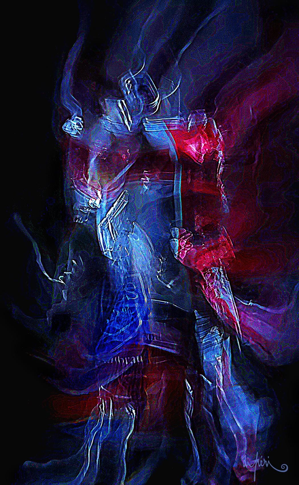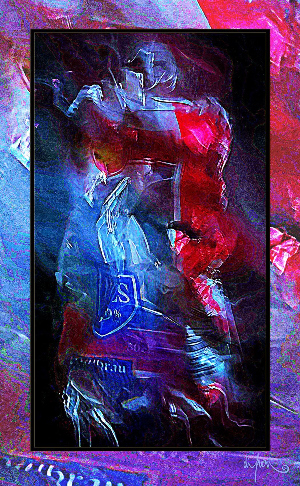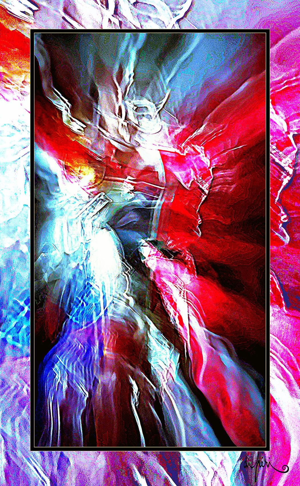 NOTA : tout comme les cadres, les reflets dus au plexiglas, qui n’est pas seulement une matière de protection, font partie intégrante de l’œuvre. Ils en prolongent et en surlignent le sens. Ils ont en charge de contextualiser l’effervescence présentielle de l’image. Le choix délibéré de cette matière de protection à effet miroir, suggère à elle seule, une mise en spatialité plus factuelle que virtuelle.