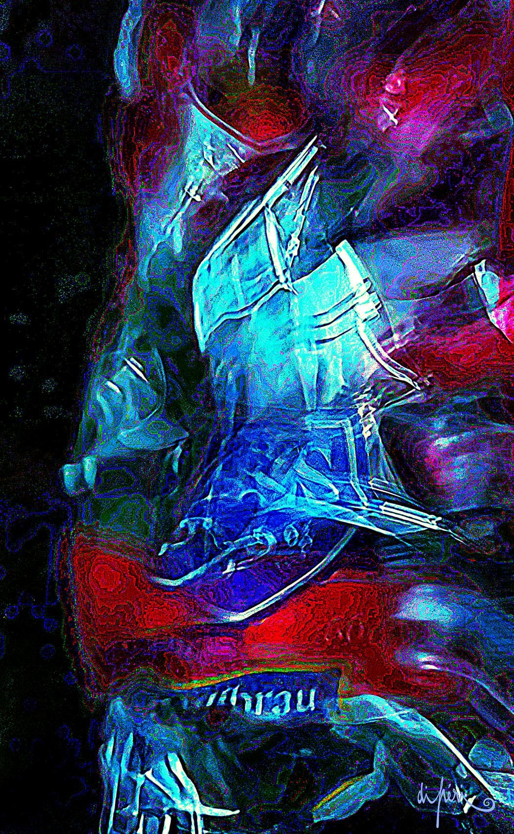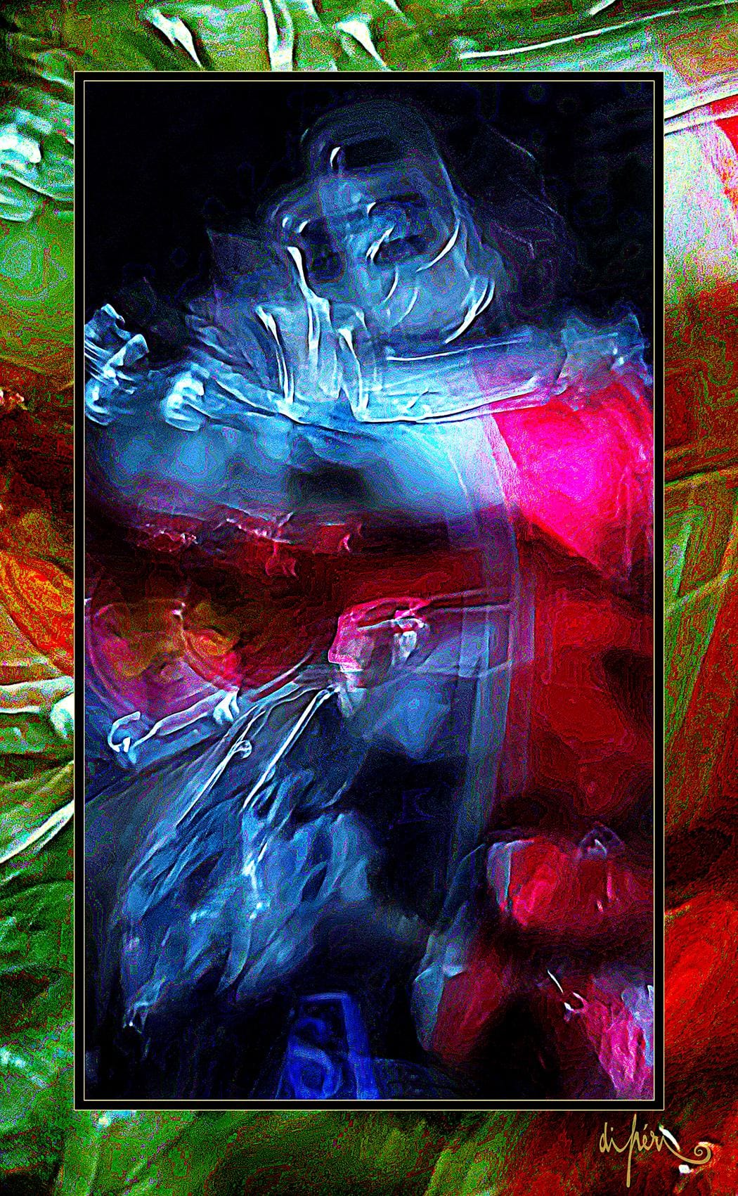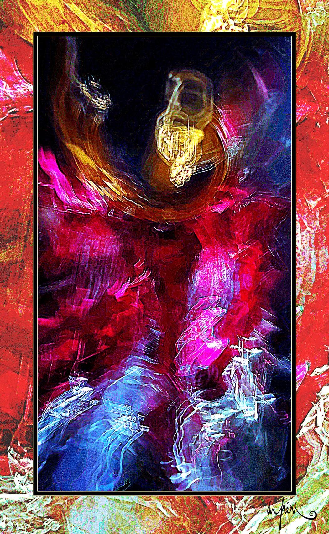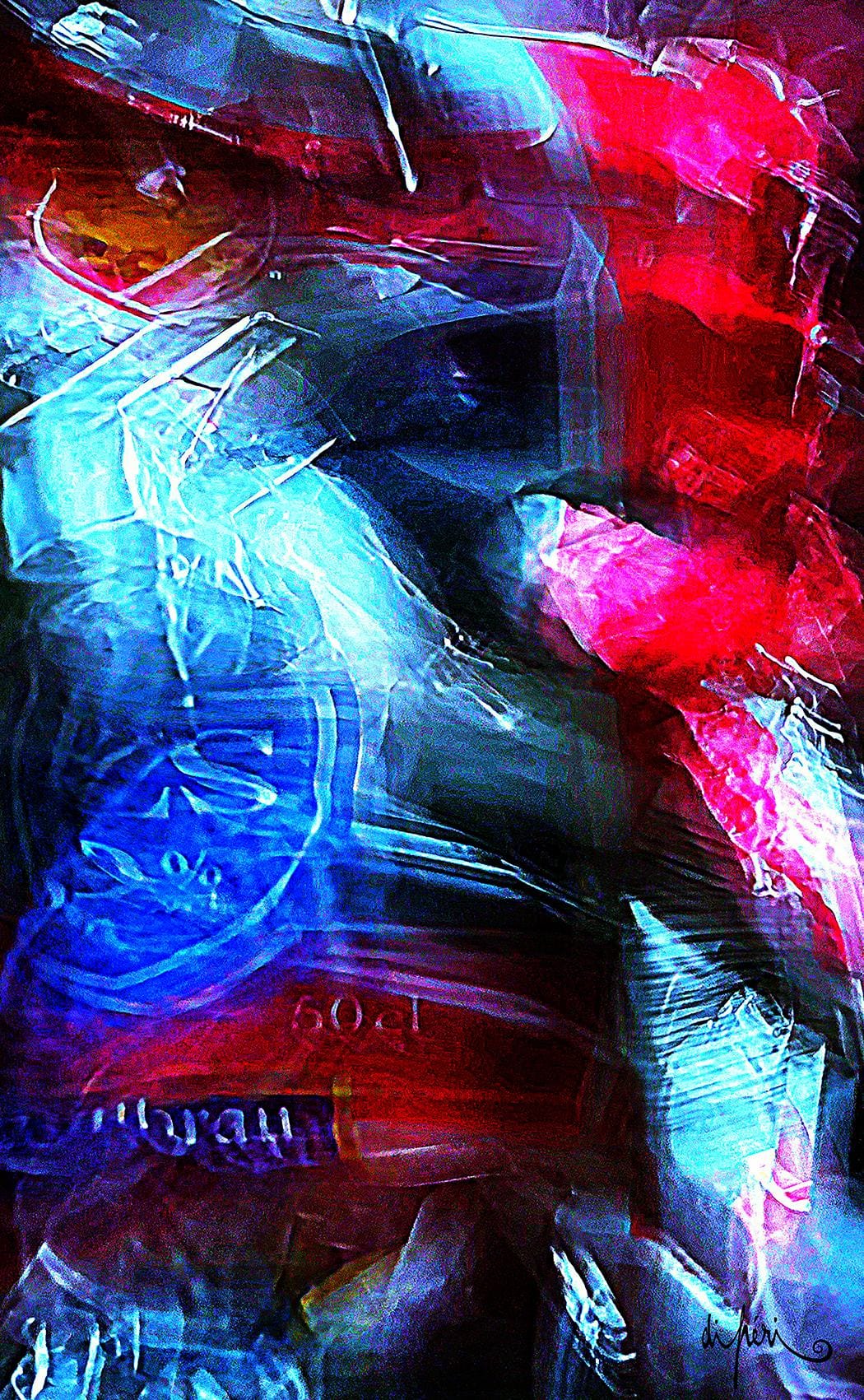 NOTA : tout comme les cadres, les reflets dus au plexiglas, qui n’est pas seulement une matière de protection, font partie intégrante de l’œuvre. Ils en prolongent et en surlignent le sens. Ils ont en charge de contextualiser l’effervescence présentielle de l’image. Le choix délibéré de cette matière de protection à effet miroir, suggère à elle seule, une mise en spatialité plus factuelle que virtuelle.