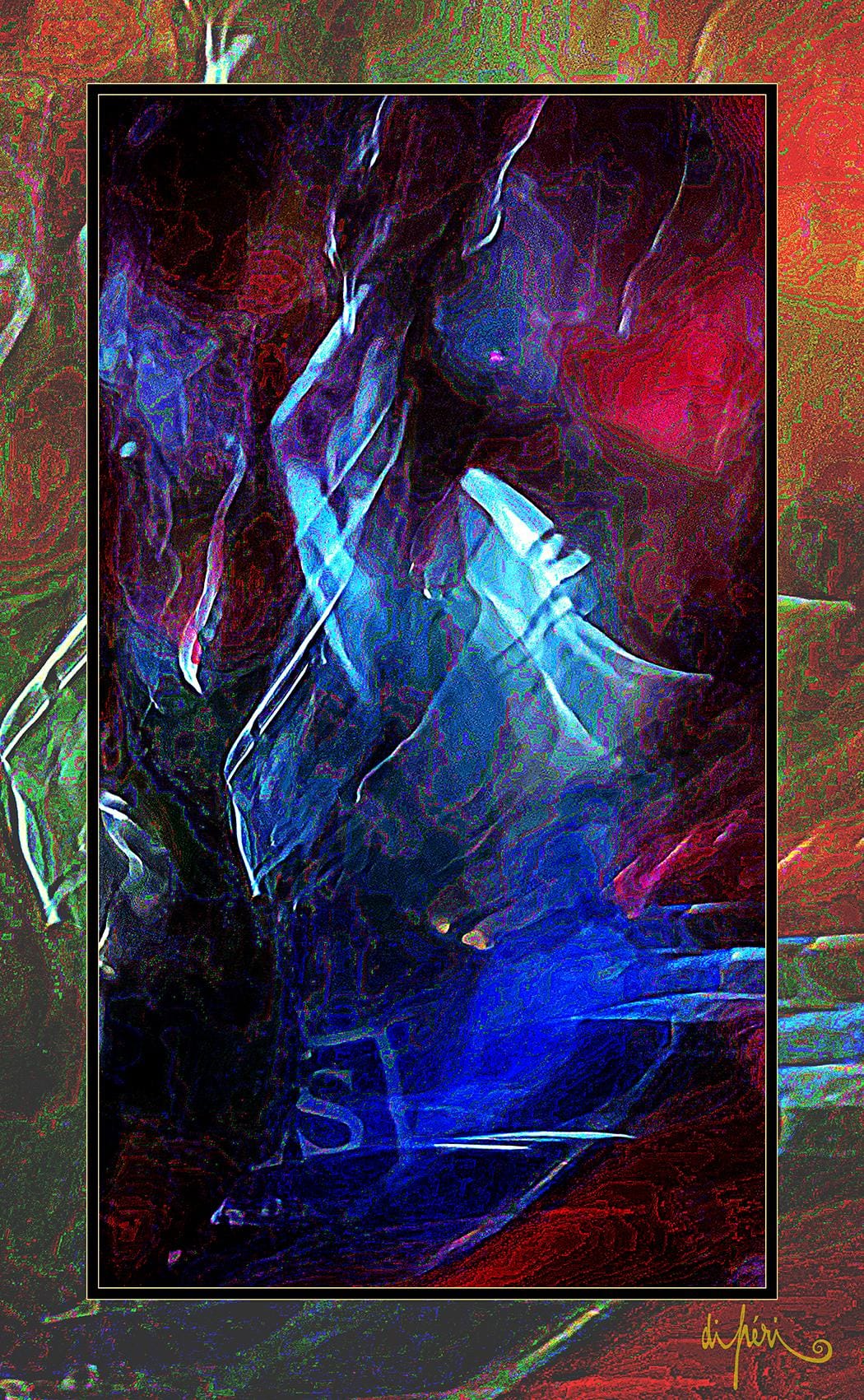 En effet, des compositions « appellent » à un trait d’union diffus avec l’environnement et avec le futur. Tel un écho, ce cadre apporte profondeur symbolique et intensité sémiologique . Son « aura diffractive » sertit l’image focale de sa résonance centrifuge afin d’évoquer une forme d’acte lyrique déjà transitionnel.