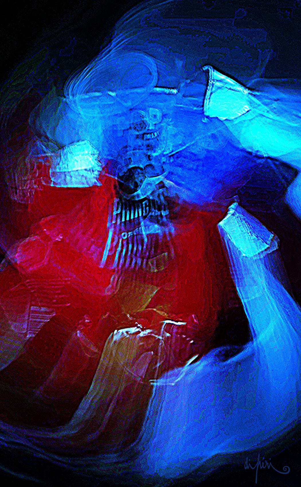 NOTA : tout comme les cadres, les reflets dus au plexiglas, qui n’est pas seulement une matière de protection, font partie intégrante de l’œuvre. Ils en prolongent et en surlignent le sens. Ils ont en charge de contextualiser l’effervescence présentielle de l’image. Le choix délibéré de cette matière de protection à effet miroir, suggère à elle seule, une mise en spatialité plus factuelle que virtuelle.