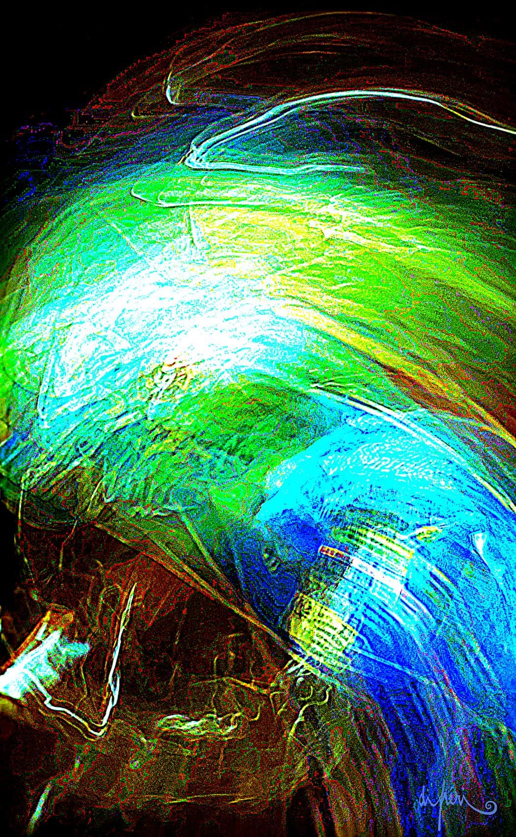 En effet, des compositions « appellent » à un trait d’union diffus avec l’environnement et avec le futur. Tel un écho, ce cadre apporte profondeur symbolique et intensité sémiologique . Son « aura diffractive » sertit l’image focale de sa résonance centrifuge afin d’évoquer une forme d’acte lyrique déjà transitionnel.