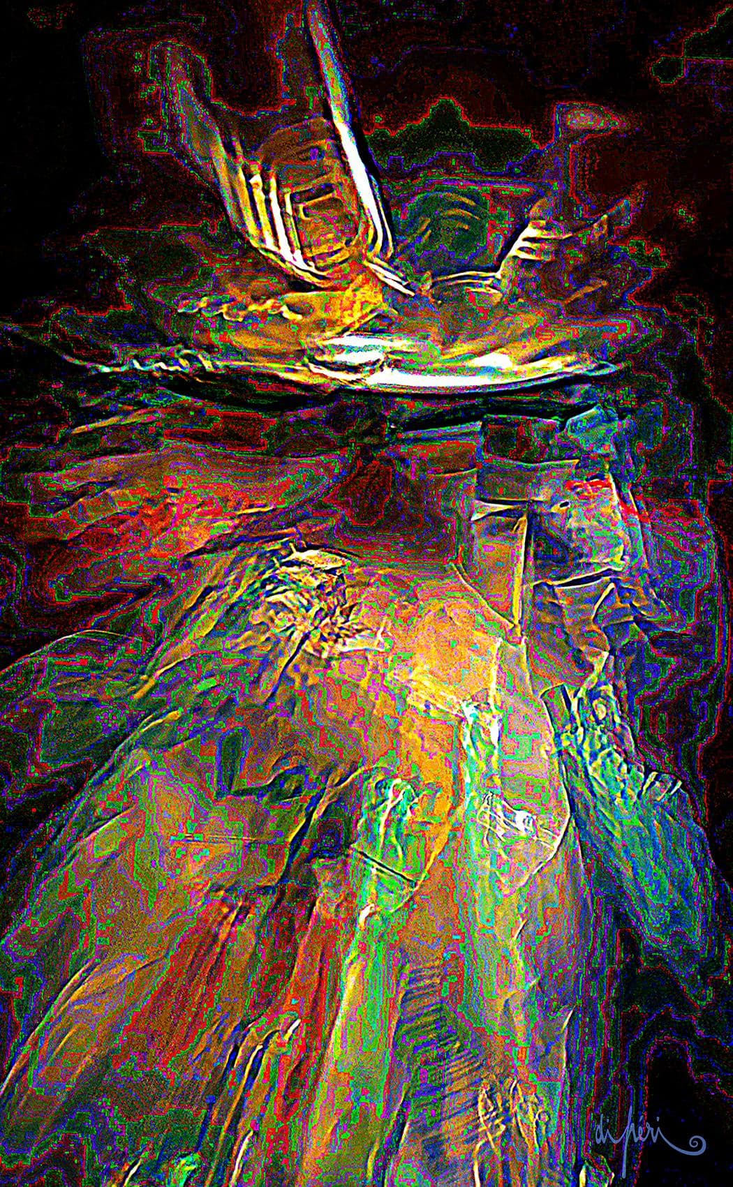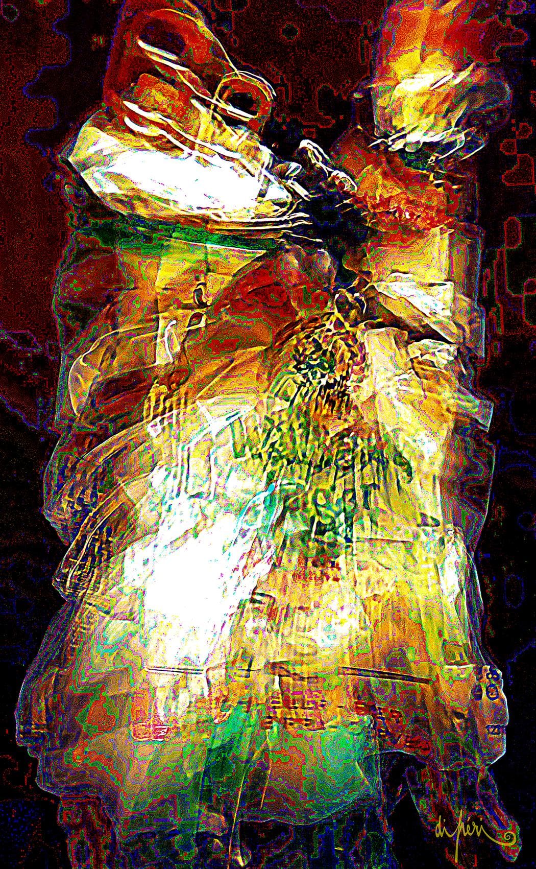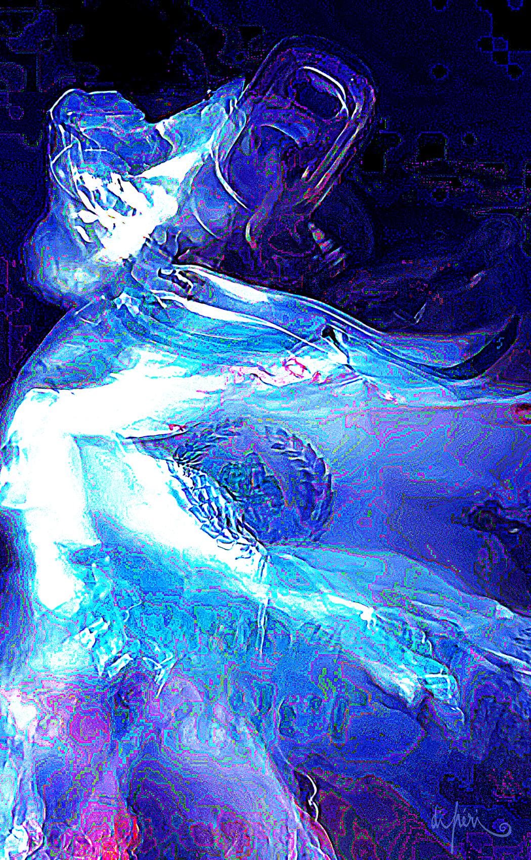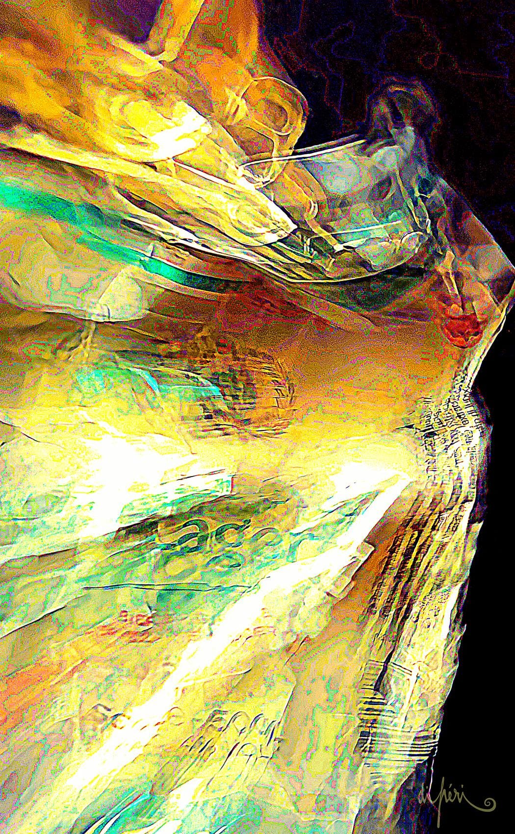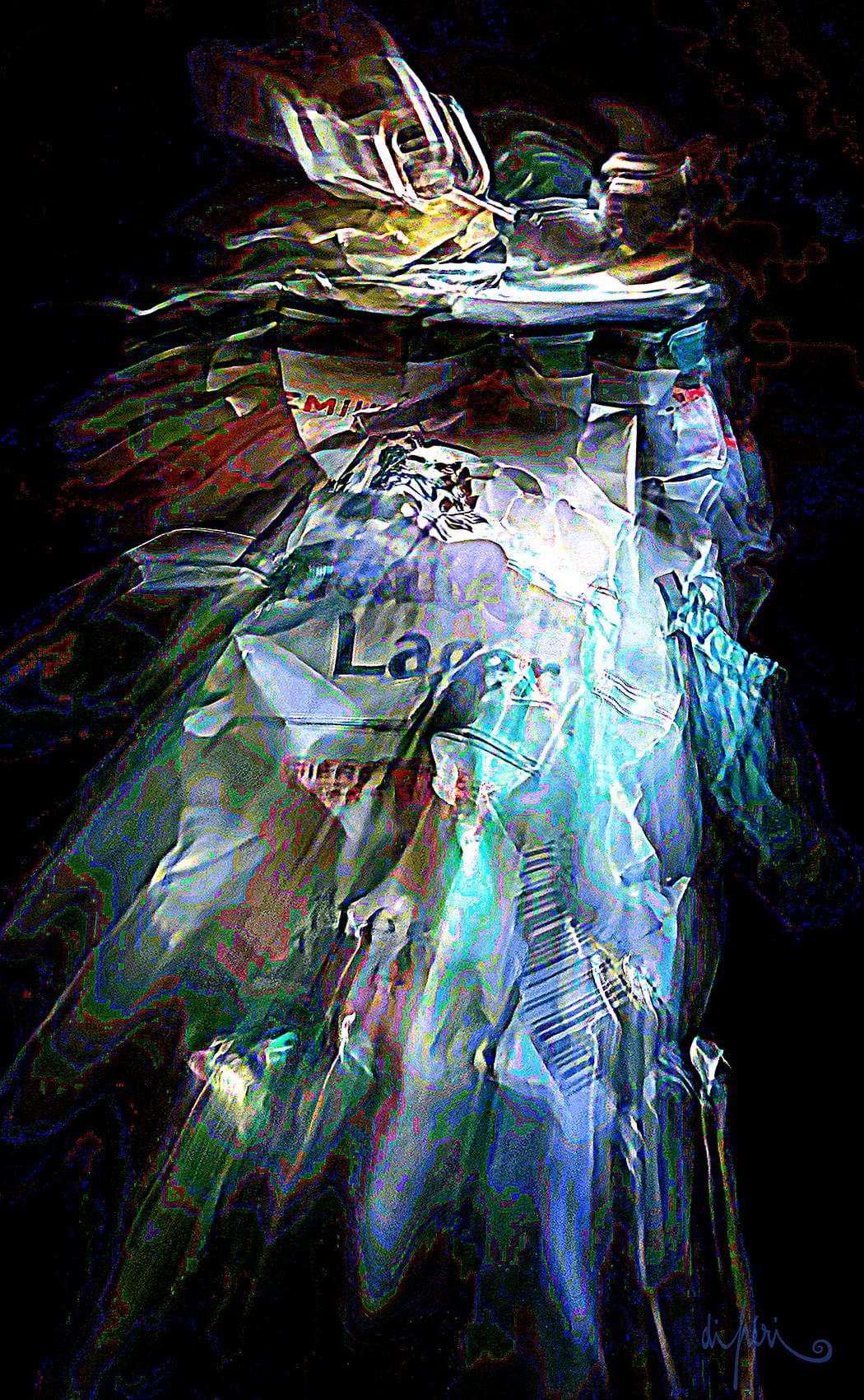 NOTA : tout comme les cadres, les reflets dus au plexiglas, qui n’est pas seulement une matière de protection, font partie intégrante de l’œuvre. Ils en prolongent et en surlignent le sens. Ils ont en charge de contextualiser l’effervescence présentielle de l’image. Le choix délibéré de cette matière de protection à effet miroir, suggère à elle seule, une mise en spatialité plus factuelle que virtuelle.