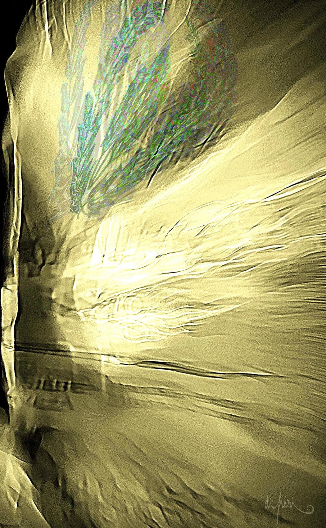 En effet, des compositions « appellent » à un trait d’union diffus avec l’environnement et avec le futur. Tel un écho, ce cadre apporte profondeur symbolique et intensité sémiologique . Son « aura diffractive » sertit l’image focale de sa résonance centrifuge afin d’évoquer une forme d’acte lyrique déjà transitionnel.