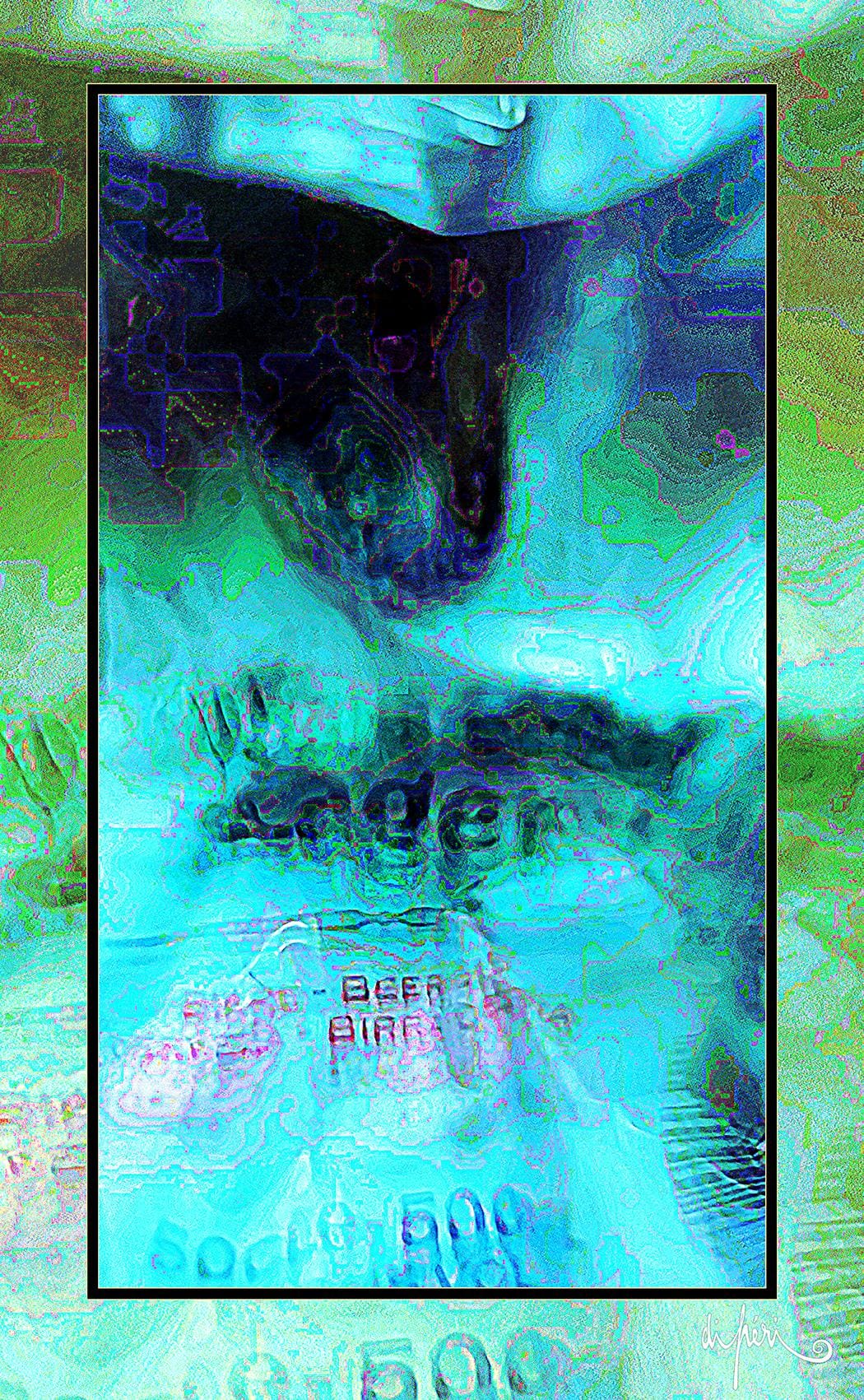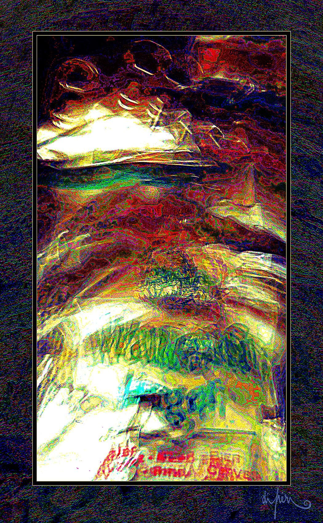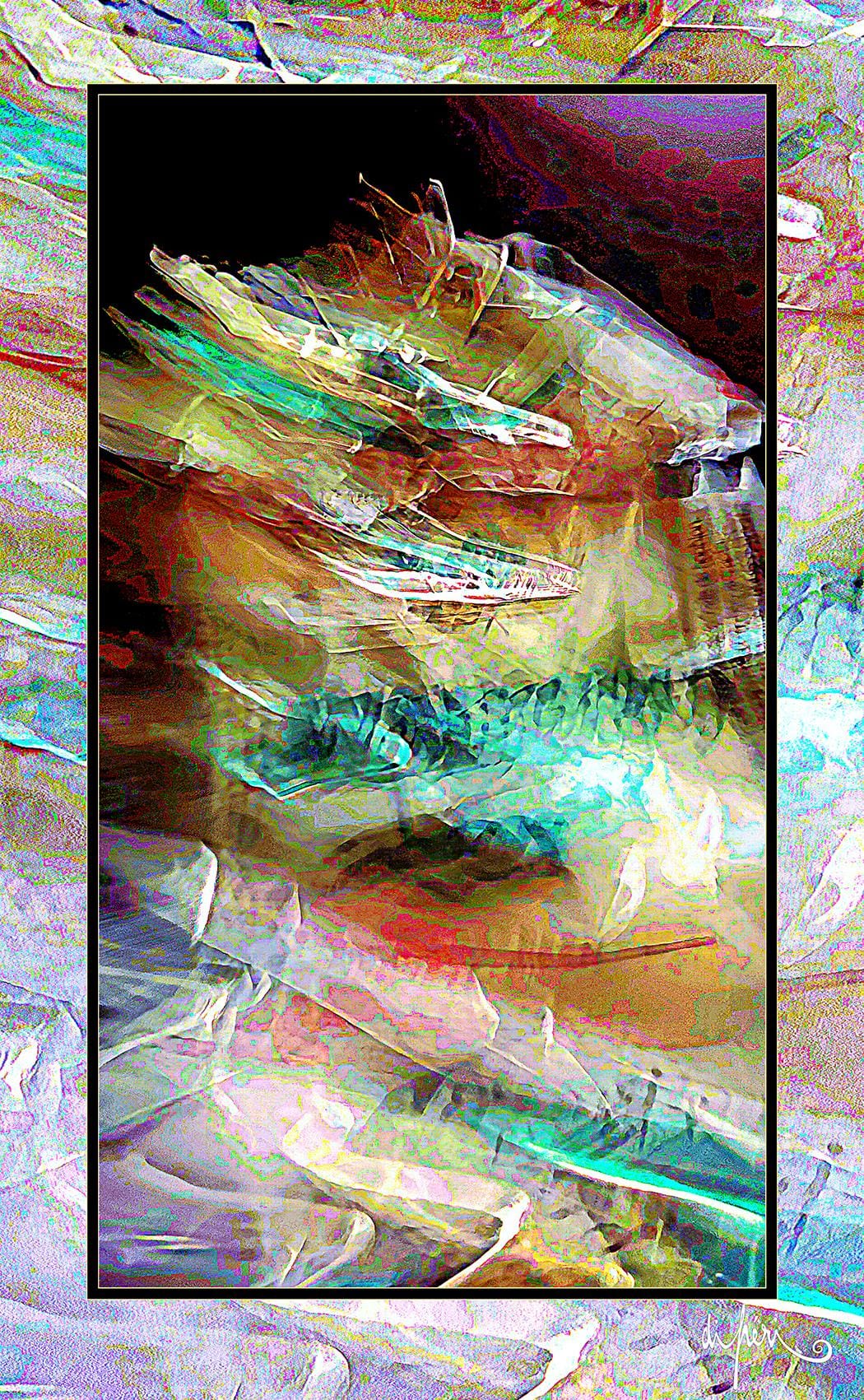 NOTA : tout comme les cadres, les reflets dus au plexiglas, qui n’est pas seulement une matière de protection, font partie intégrante de l’œuvre. Ils en prolongent et en surlignent le sens. Ils ont en charge de contextualiser l’effervescence présentielle de l’image. Le choix délibéré de cette matière de protection à effet miroir, suggère à elle seule, une mise en spatialité plus factuelle que virtuelle.