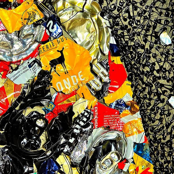 In Packchwork, the “pack” becomes a motif, the can a pixel, the act of crushing a rhythmic gesture. Each collage vibrates with color and density, questioning our relationship with consumption, branding, and transformation.