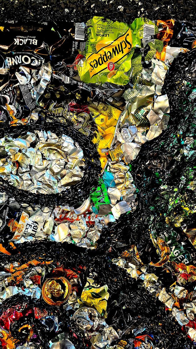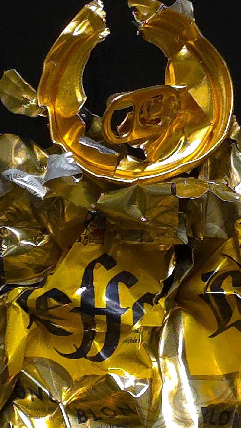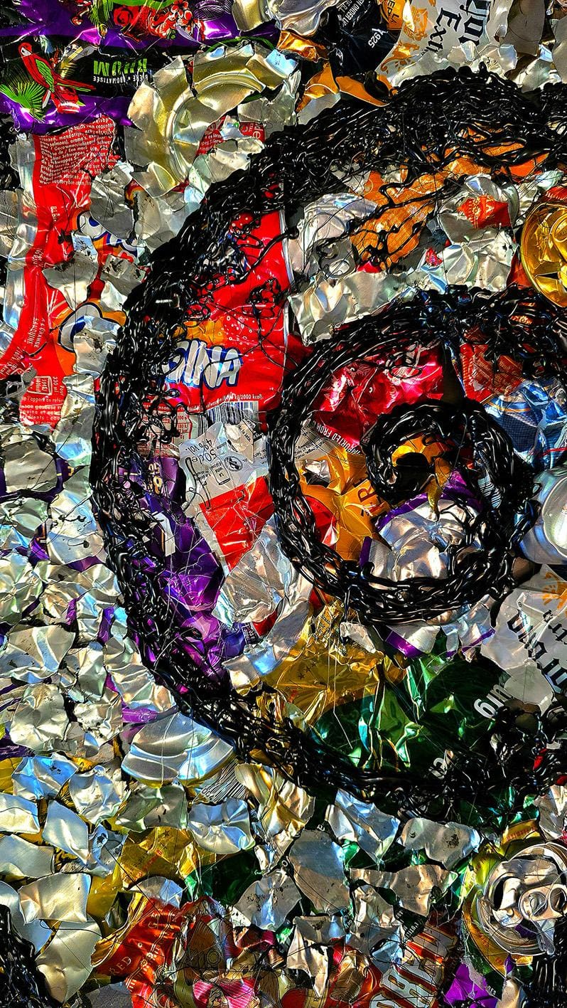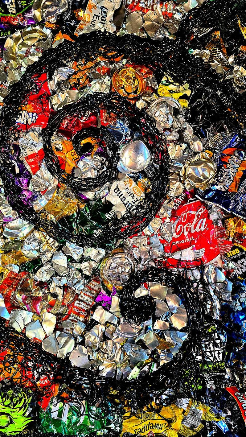 Mues speaks of the individual transformation of matter; Packchwork speaks of its collective recomposition. Together, they form a dialogue: from the introspective gaze of a single crushed can to the architectural energy of an entire surface built from hundreds.